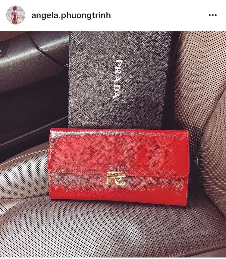 Chưa dừng lại ở đó, Angela Phương Trinh cũng vừa kịp tậu cho mình một chiếc ví da màu đỏ của Prada ngay trong những ngày đầu năm âm lịch này.
