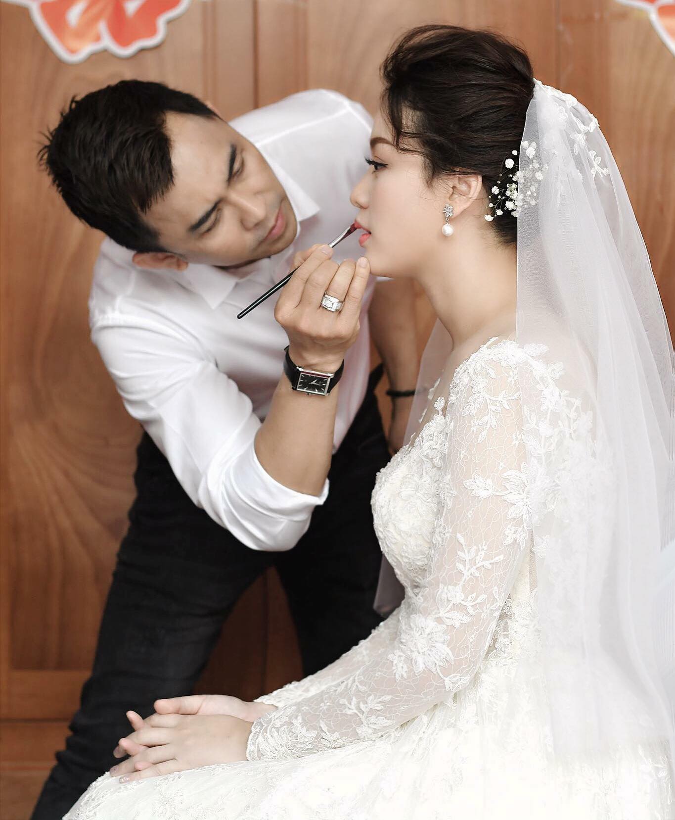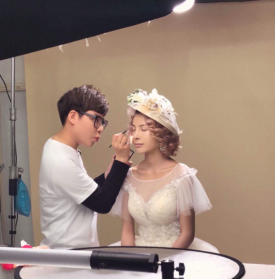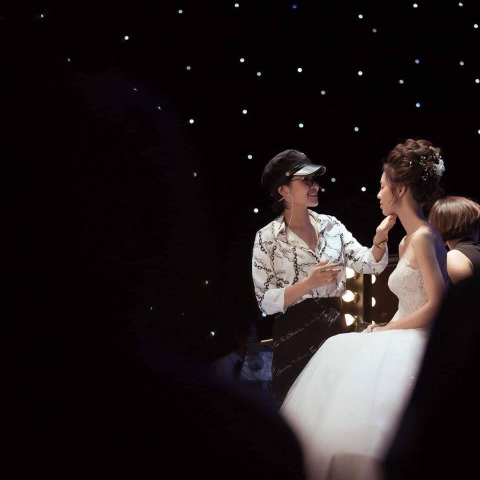 Linh Jace tỉ mỉ hóa trang cho người mẫu tại Calla Bridal (29 Mai Hắc Đế).