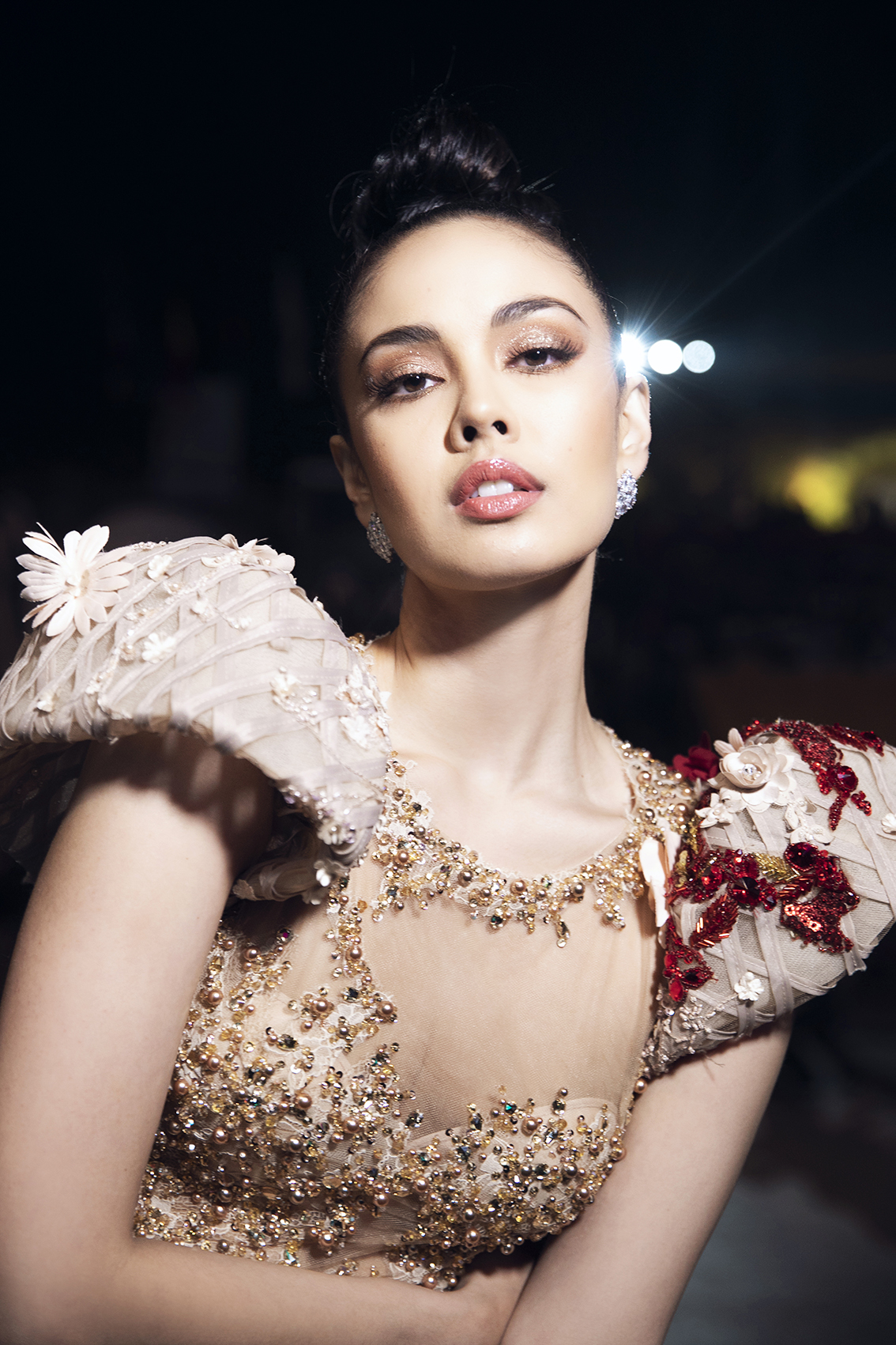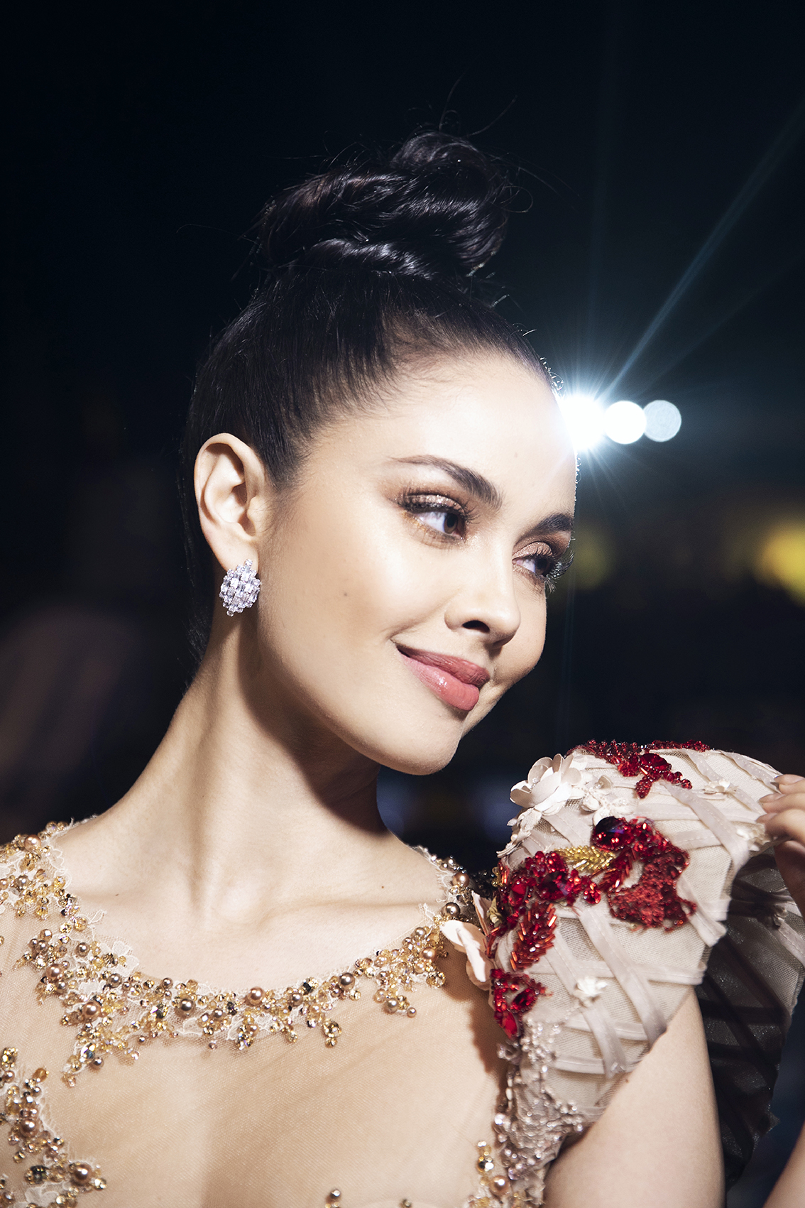 Mang chủ đề về hoa, Megan Young đã được khoác lên mình thiết kế vô cùng tinh tế với những chi tiết đính kết vô cùng tỉ mỉ, công phu.