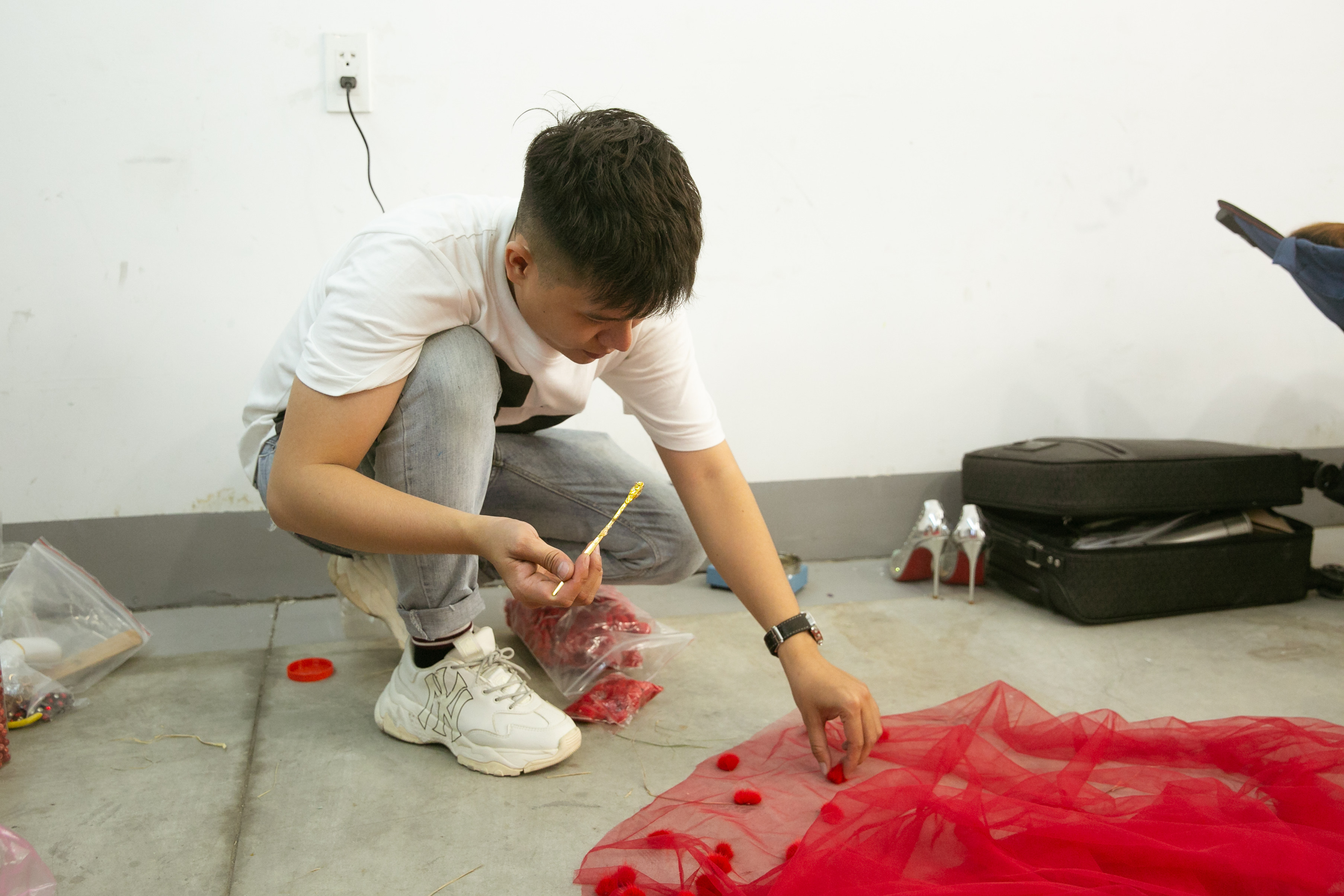 Đã có hai bộ váy áo được mình thực hiện ngay tại trường quay để kịp với tiến độ làm việc của ê kíp và bổ trợ nhanh nhất có thể trong các cảnh quay. Ngoài ra Lâm Lâm thiết kế toàn bộ váy áo cho diễn viên và vũ công của MV”, nhà thiết kế chia sẻ với phóng viên SAOstar.
