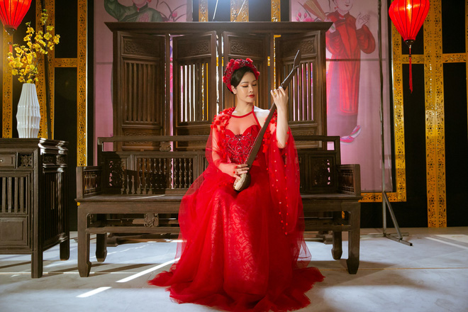 Ngoài những bộ váy “biến hình” Nhật Kim Anh thành “tiên nữ” hết sức bay bổng, lãng mạn, thì áo dài, áo yếm cách điệu cũng trở nên hút hồn trong nhiều phân cảnh đậm không khí xuân.
