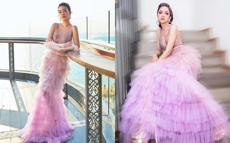 Trong số những người đẹp đụng độ váy áo, thì Hương Giang có lẽ có là nàng hậu có nhiều “duyên nợ” với Đỗ Mỹ Linh nhất. Cứ diện váy nào là Hoa hậu Việt Nam đụng hàng Hoa hậu chuyển giới Quốc tế váy đó.