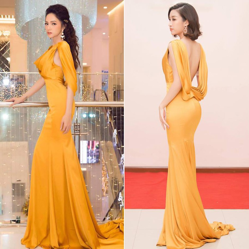 Hoa hậu Đỗ Mỹ Linh từng khiến fan “nổ đóm” khi phô diễn sắc vóc nuột nà đến từng cm trong bộ đầm ánh kim trần lưng này. Thiết kế đầm vàng ánh kim với dáng cổ yếm khoe trọn bờ vai trần mềm mại. Không chỉ tôn dáng ngọc ngà, bộ đầm còn bật lên nước da trắng không tỳ vết khiến ai nhìn cũng xuýt xoa.