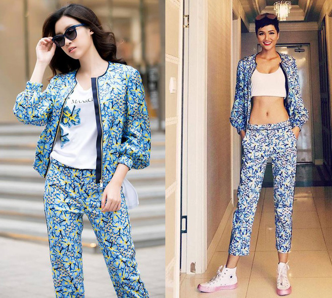 Diện cùng một set đồ hoa nổi bật nhưng Hoa hậu Đỗ Mỹ Linh ngọt ngào, duyên dáng thì H'Hen Niê lại cá tính khỏe khoắn nổi bật làn da nâu rắn rỏi. Đúng là cùng một set đồ hoa thế nhưng khi Đỗ Mỹ Linh và H'Hen Niê mặc lên người lại ra hai phong cách hoàn toàn đối lập nhau.