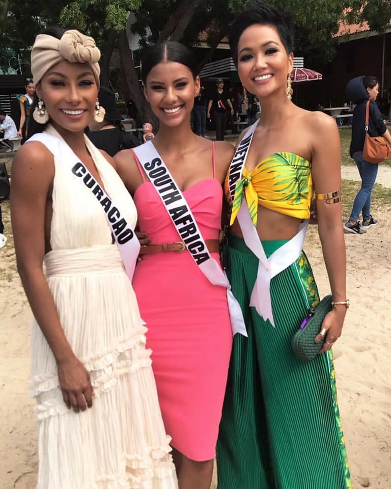 Năm nay đại diện Việt và Nam Phi tỏ ra khá thân thiết với nhau. Đây cũng là đối thủ đáng gờm của H'Hen Niê.