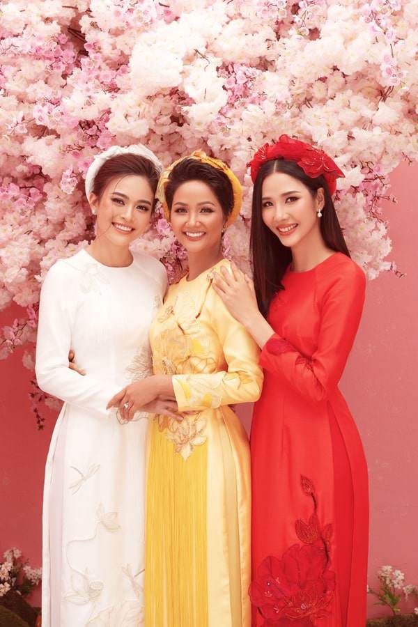 Còn nhớ trong bộ ảnh top 3 Hoa hậu Hoàn vũ 2018 mừng xuân, không kể vị trí đứng giữa, H'Hen Niê vẫn nổi bật nhờ nhan sắc đặc trưng của mình.