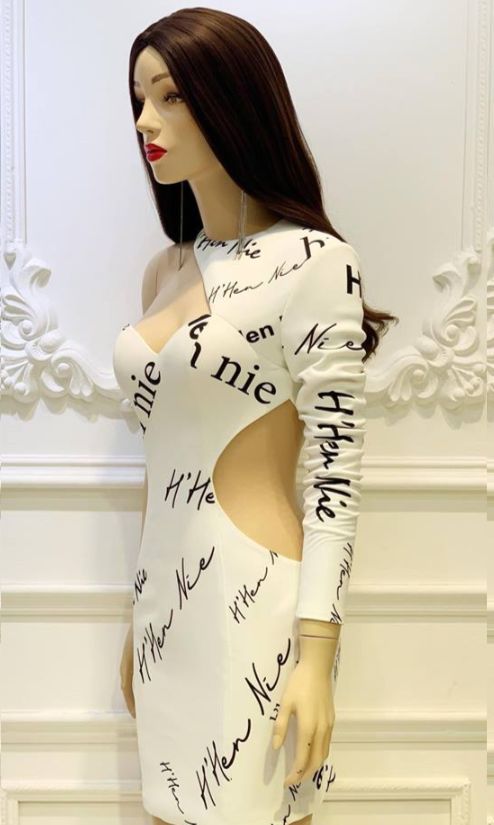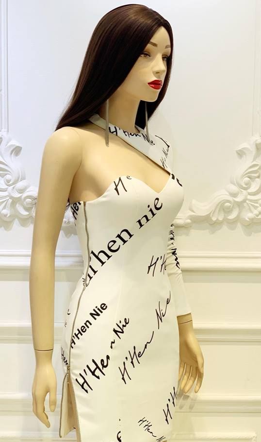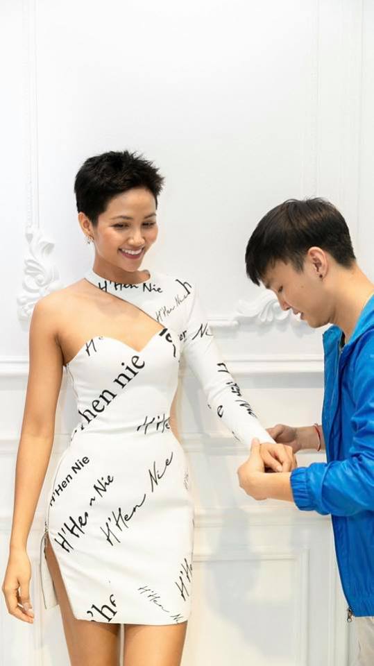 Trong đó đáng chú ý là thiết kế được in tên của H'Hen Niê từ một nhà thiết kế dành tặng cho chân dài Ê Đê để giúp cô nổi bật trong chặng đường sắp tới. Về phom dáng, thiết kế đảm bảo được yếu tố gợi cảm, mới mẻ tôn lên làn da, vóc dáng khỏe khoắn của H'Hen Niê.