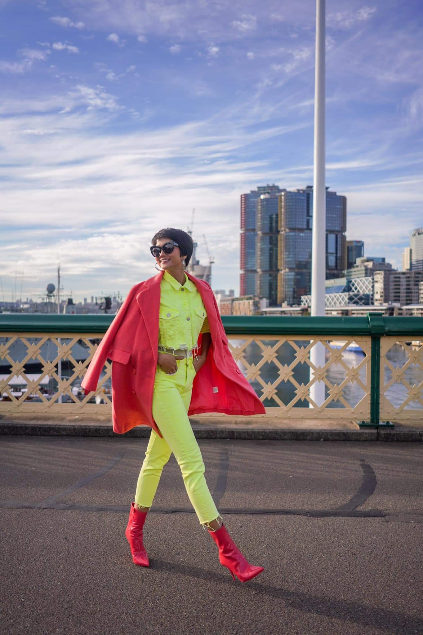 Thế nhưng các nàng nên nhớ, hãy chọn boots và quần cùng màu nhau để tạo sự đồng nhất, trường hợp này do Hen đang diện theo lối colour block, đồng thời đôi boots là điểm nhấn nên có sự khác biệt.