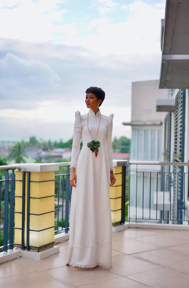 Chưa dừng lại ở đó, để thể hiện tinh thần gắn kết giao lưu văn hóa giữa hai nước, H'Hen Niê đã tinh tế chọn thiết kế có sự giao thoa giữa hai trang phục truyền thống của Việt Nam và Philippines.