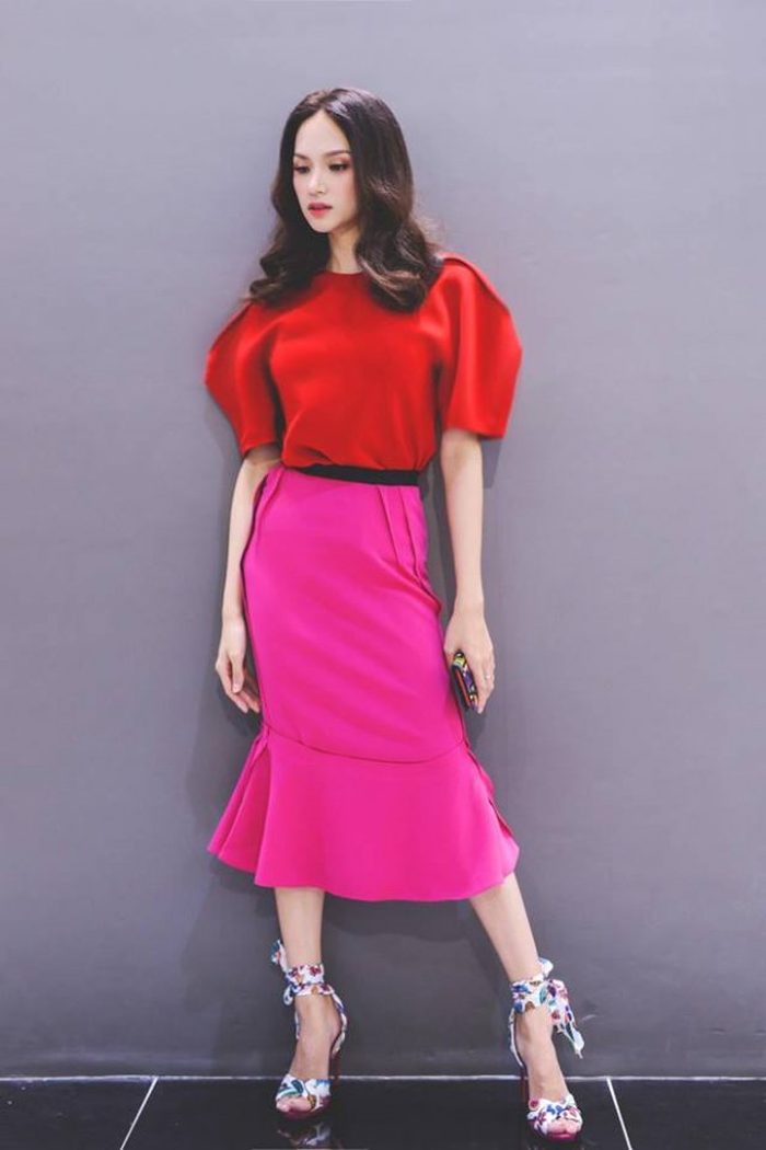 Ngay cả Hương Giang cũng bị chê bai khi diện sắc hồng. Nhưng không thể phủ nhận rằng Hoa hậu chuyển giới đã rất cao tay khi diện màu sắc này. Gam màu ngọt ngào, lãng mạn mà mới chỉ nhìn qua đã thấy yêu, khiến chủ nhân trở nên nữ tính, nhu mì và tươi tắn được Hương Giang xử đẹp.