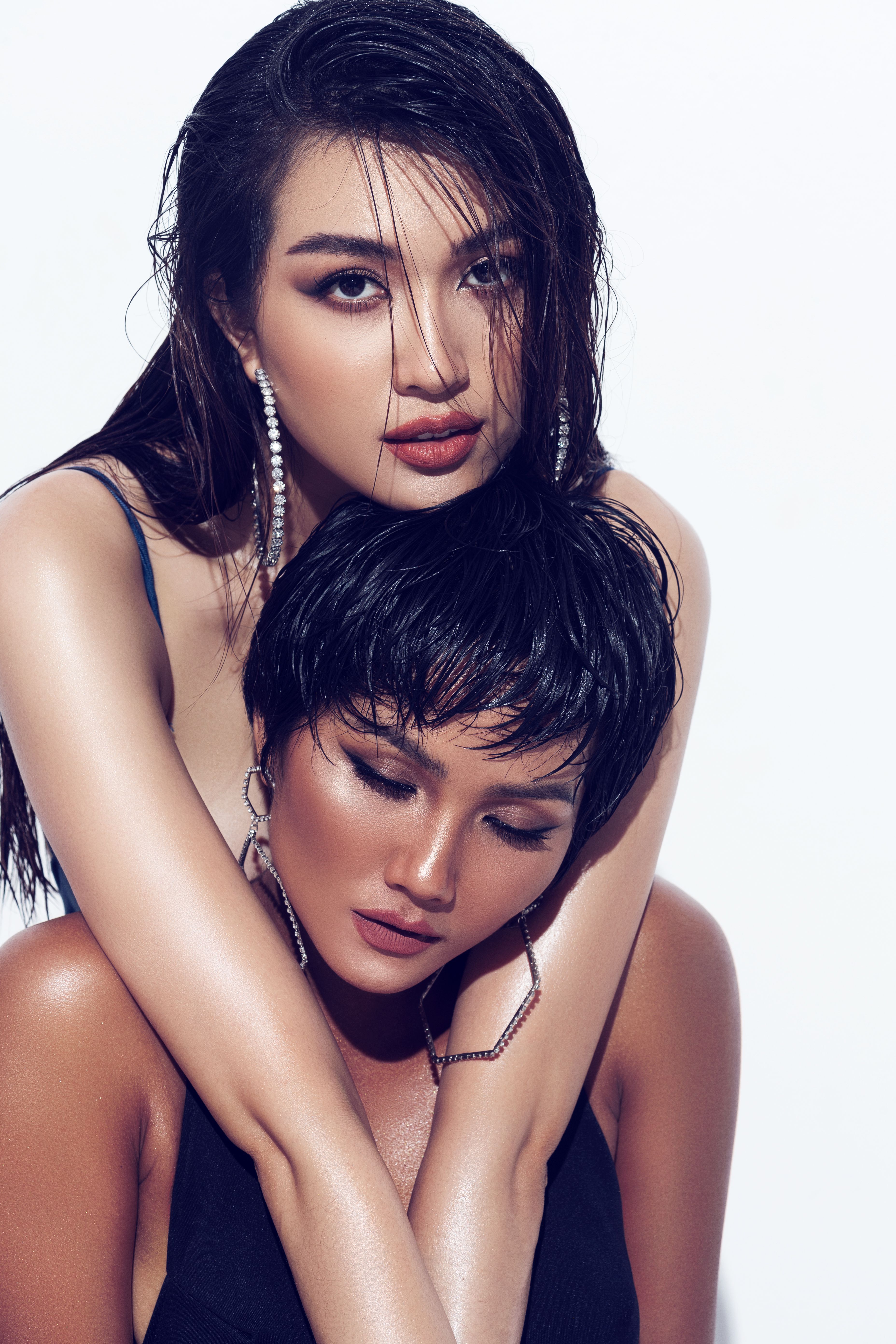 Cả hai phối hợp ăn ý, nhịp nhàng cùng nhau trong từng shoot ảnh, thể hiện thần thái năng động, tự tin và quyến rũ của những người phụ nữ hiện đại.