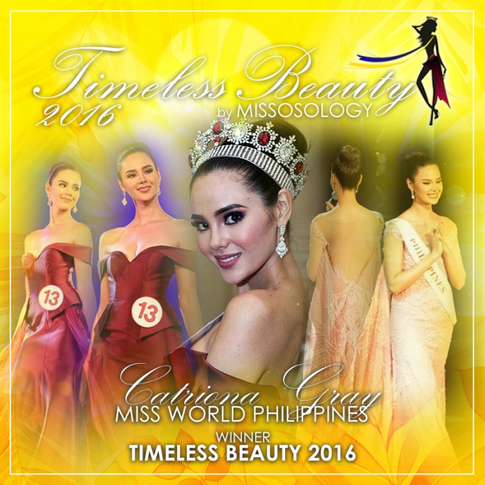 Riêng về Catriona Gray - đương kim Miss Universe 2018 sẽ không có tên trong cuộc đua danh hiệu Timeless Beauty năm nay bởi vào năm 2016, Catriona Gray sau thành tích top 5 Miss World - Hoa hậu Thế giới 2016 đã được đề cử tham gia Timeless Beauty 2016 và giành chiến thắng.