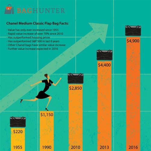 Thực tế, một chiếc túi Chanel, Hermes hay Louis Vuitton đều có khả năng sinh lời và không hề có dấu hiệu mất giá. Đây là điều đã được kiểm chứng. Đơn cử như với mẫu Chanel Medium Classic Flap ra đời vào năm 1955. Khi đó nó chỉ có giá 220 USD. Cho tới năm 1990, chiếc túi có giá 1150 USD, năm 2016, giá trị của nó gấp 4 lần, lên tới 4900 USD… giá trị tăng trưởng được xác nhận là 72% cho 5 năm, một con số khá “béo bở”.