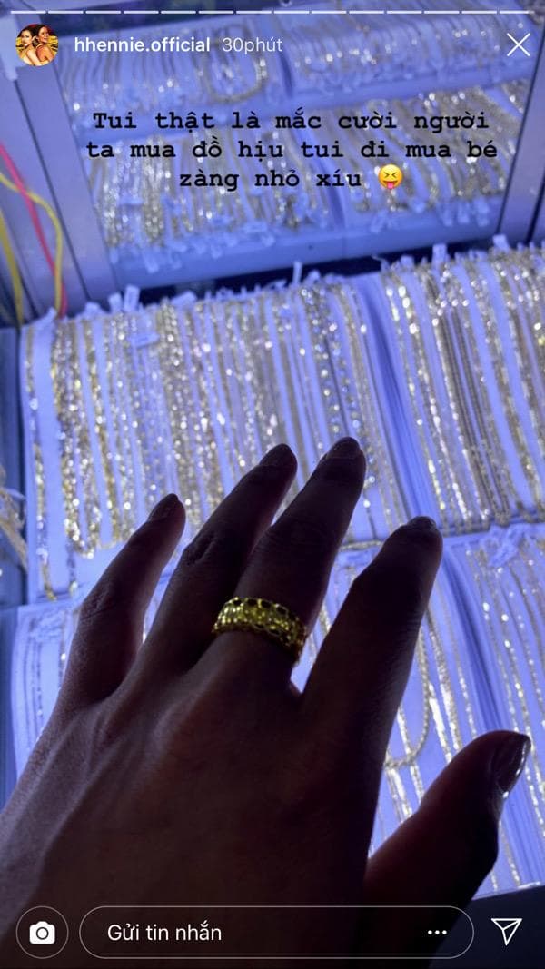 Giản dị, chân thành… H'Hen Niê chưa từng nghĩ đến việc sắm sửa thứ gì nhằm phục vụ nhu cầu chưng diện của bản thân. Tiền kiếm được, cô mua vàng cho mẹ, đi từ thiện hay tham gia các hoạt động cộng đồng… và cả mới đây, nàng hậu tiếp tục khiến các fan thêm yêu quý khi khoe lên trang cá nhân món đồ mà mình vừa mua - một chiếc nhẫn vàng nhỏ xinh, vừa làm đẹp, vừa để đầu tư tích trữ sinh lời.