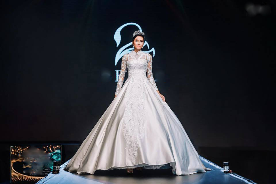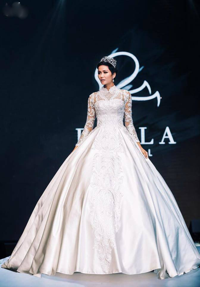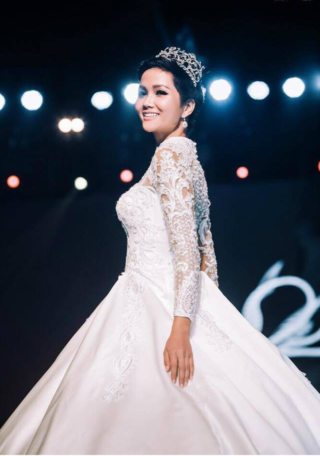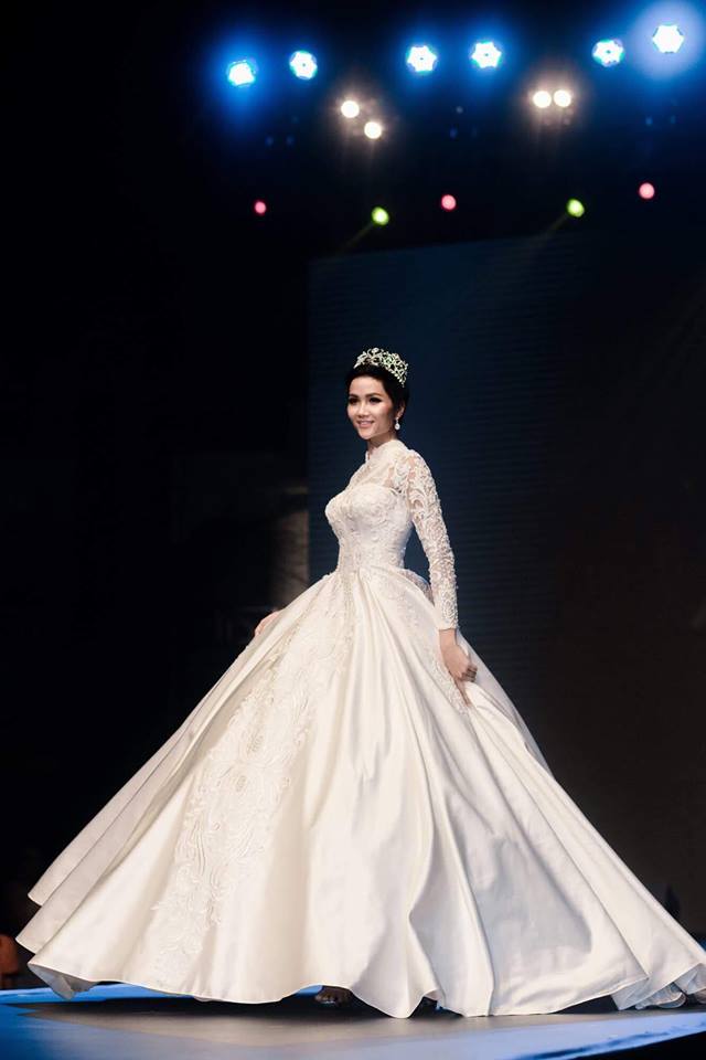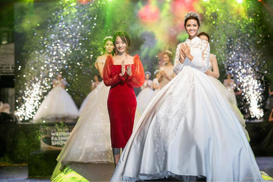 Tối 16/6, H'Hen Niê có mặt tại Hà Nội tham gia show diễn thời trang cưới “Vietnam Wedding Fashion Show”. Người đẹp diện bộ trang phục cưới được thêu đính cầu kỳ đảm nhiệm vị trí kết màn cho show diễn.