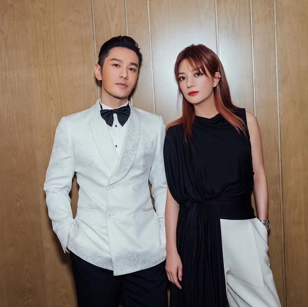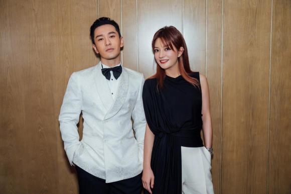 Triệu Vy với trang phục đen -trắng thanh lịch thì Huỳnh Hiểu Minh cũng trong bộ suit với tông màu tương tự
