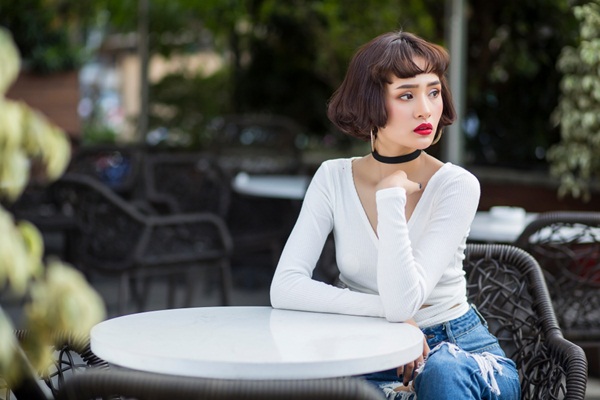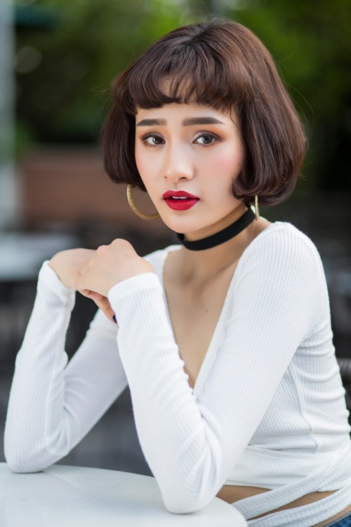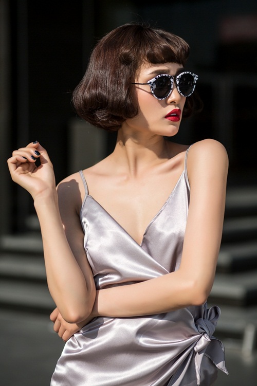 Mái tóc ngắn uốn cup, ôm trọn khuôn mặt thon gọn là thương hiệu của Hiền Hồ khiến người hâm mộ phải dành cho cô danh hiệu búp bê.