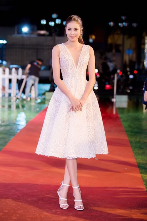 Trong trang phục váy trắng với đường xẻ ngực chữ V sâu hút khiến Phạm Hương càng cuốn hút hơn.