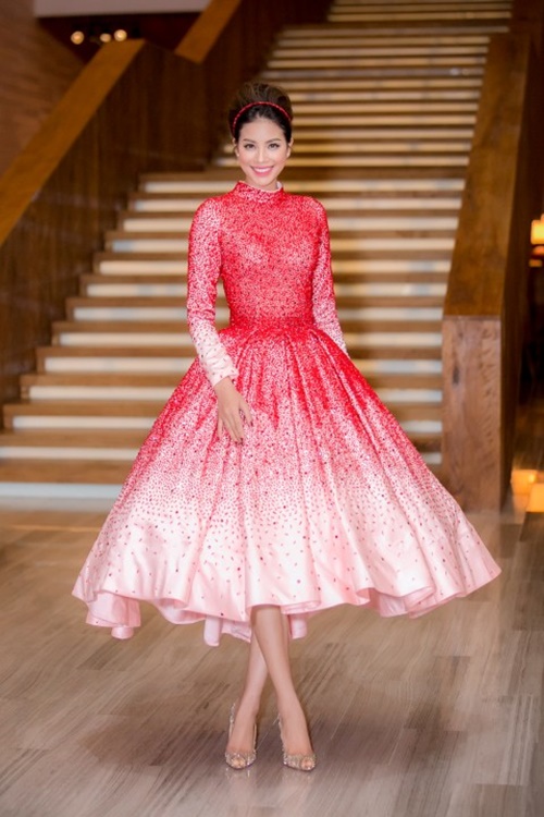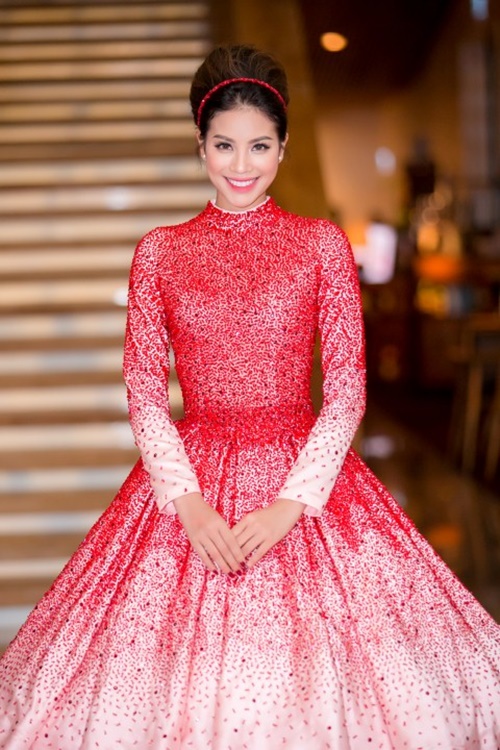Đây là lần hiếm hoi của Phạm Hương khi cô hóa thân thành công chúa với chiếc váy đỏ nổi bần bật trong một sự kiện năm 2016.