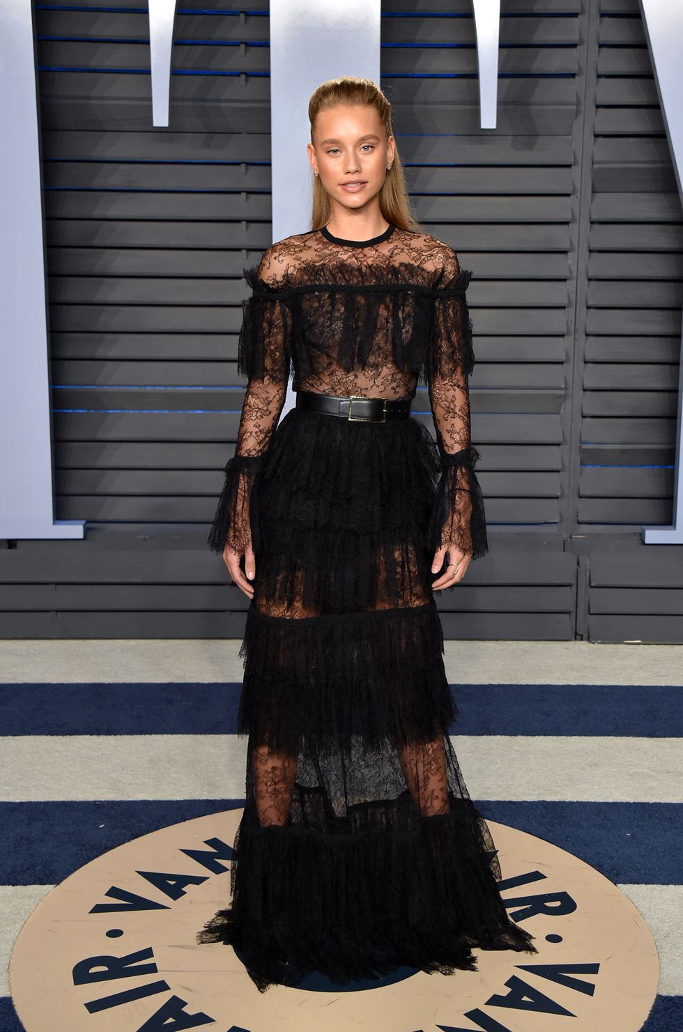Cũng cùng một chiếc đầm trong suốt nhưng Elsa Hosk có vẻ “kín đáo” hơn với đầy đủ trang phục lót.