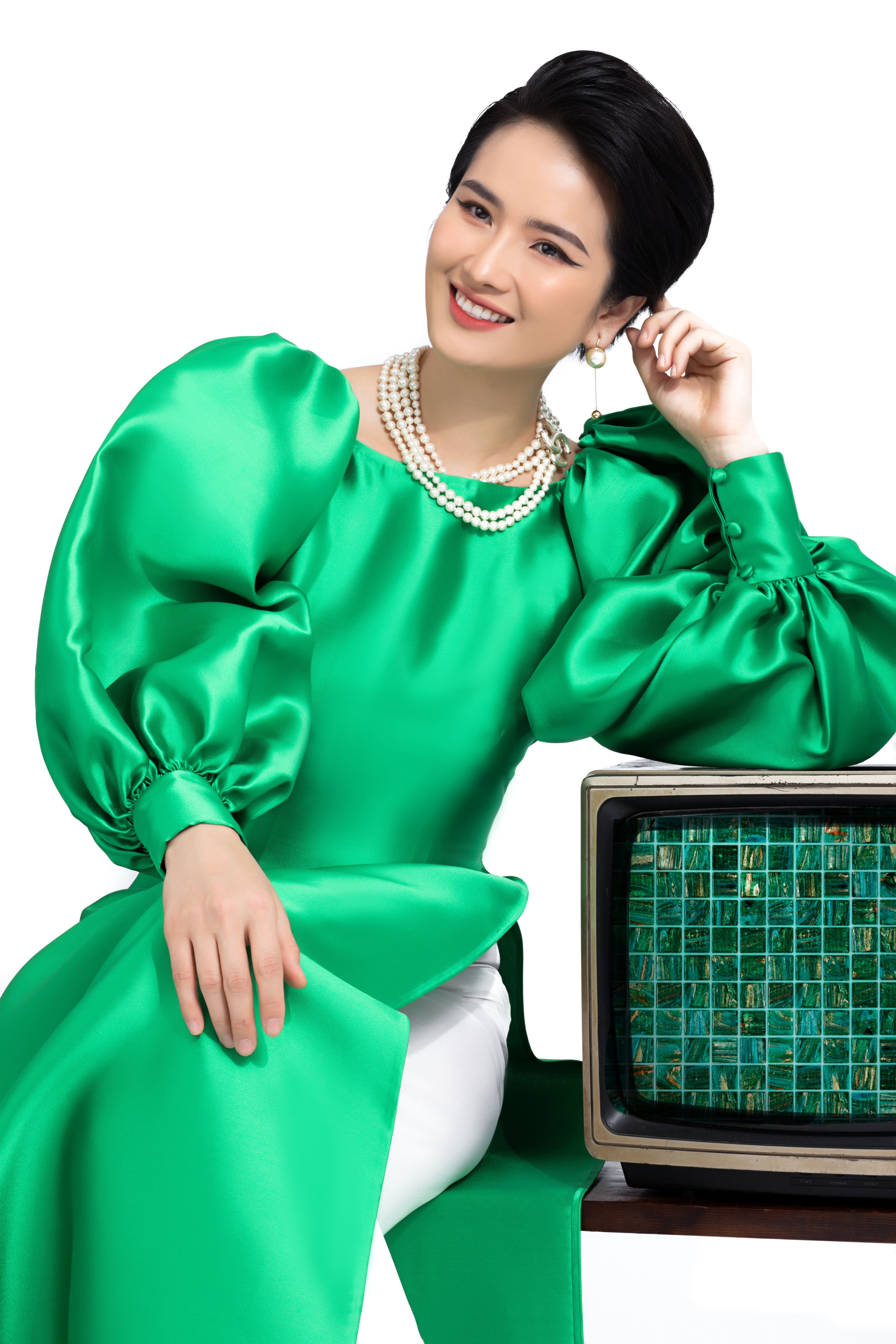 Tông màu xanh tưởng không hợp với nhan sắc đằm thắm, trang nhã nhưng hóa ra lại càng bổ trợ cho nhau.
