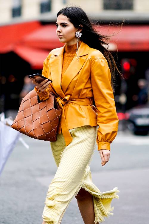 Sự chuyển màu từ nâu, vàng nâu đến vàng chanh trong outfit của cô bạn này chứng tỏ người mặc sở hữu một gu thẩm mỹ tinh tế.
