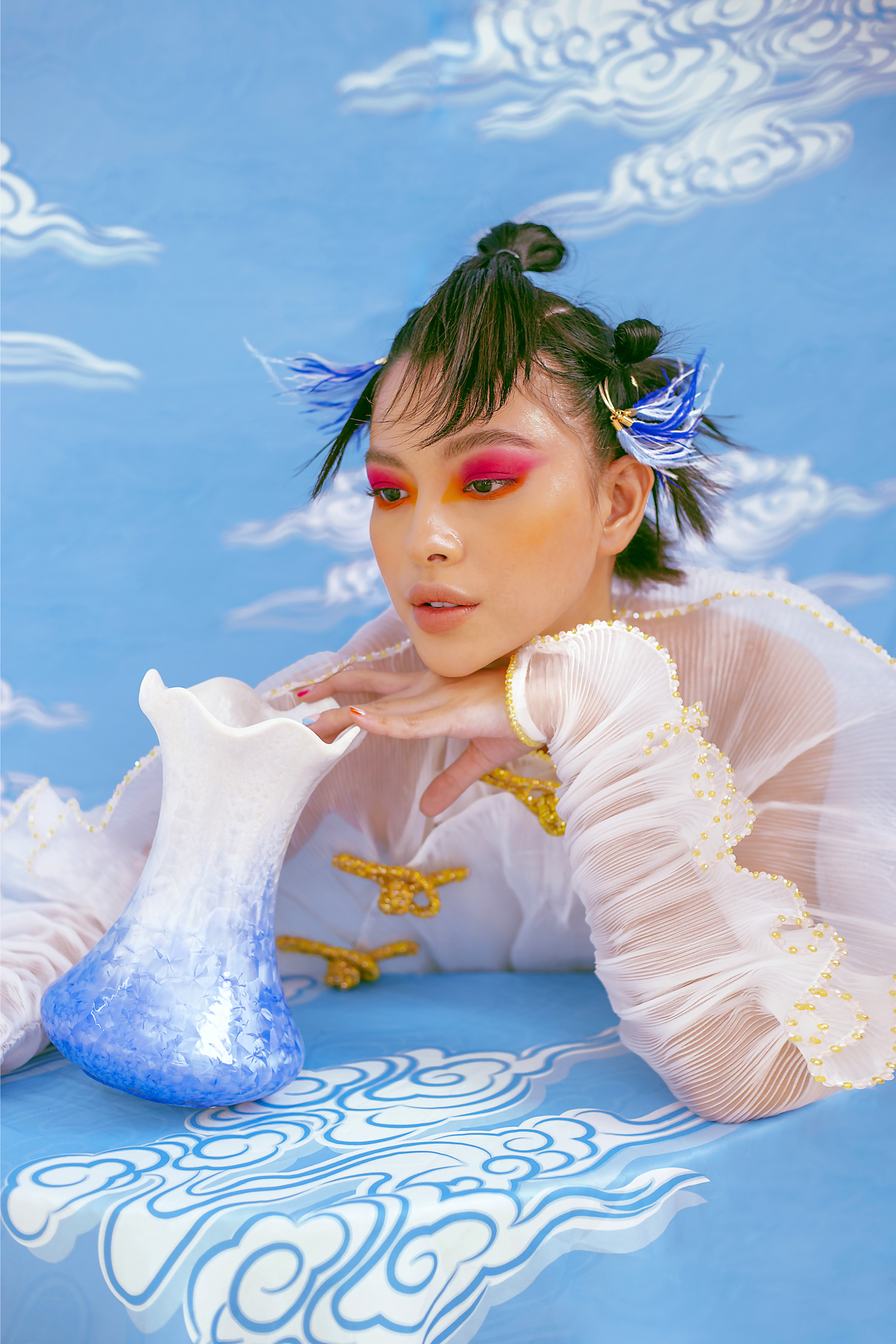Trong bộ ảnh mới nhất, Tú Hảo hoá thân thành Hằng Nga kiêu kỳ, phá cách với những nét chấm phá khác lạ nhưng vẫn vô cùng cuốn hút. Sánh đôi bên Quán quân “Gương mặt thương hiệu” mùa thứ hai là Jun Phạm, anh hoá thân thành Hậu Nghệ khôi ngô, tuấn tú với những nét phong trần, thách thức mọi rào cản.