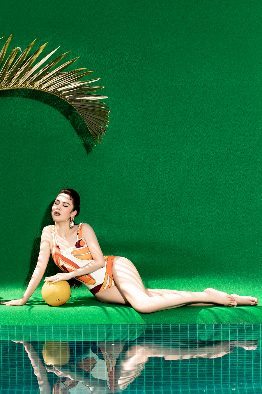 Mới đây, hoa hậu 3 con đã thực hiện bộ hình đắt giá như lời tư vấn cho phái đẹp cách chọn áo bơi tôn dáng nịnh da. Phương Lê đưa hẳn bộ sưu tập bikini, phụ kiện hàng hiệu đắt đỏ như Hermes, Dolce Gabbana, Salvatore của mình vào bộ hình.