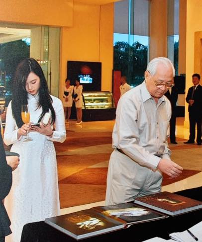 Hình ảnh Anh Sa bên cạnh ông ngoại của mình vô tình được phóng viên chụp trong một event trước đây được Hoa hậu Giáng My chia sẻ lại