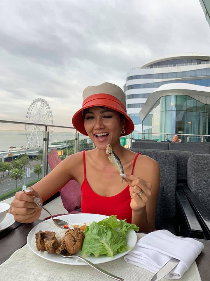 Hình ảnh Hoa hậu Hoàn vũ Việt Nam mặc áo hai dây, vẫn với chiếc nón lúc ở sân bay ngồi thưởng thức bữa ăn khiến cộng đồng fan thích thú. Hiếm có một hoa hậu nào giản dị đến như vậy, một fan hâm mộ Philippines đã nhận xét.