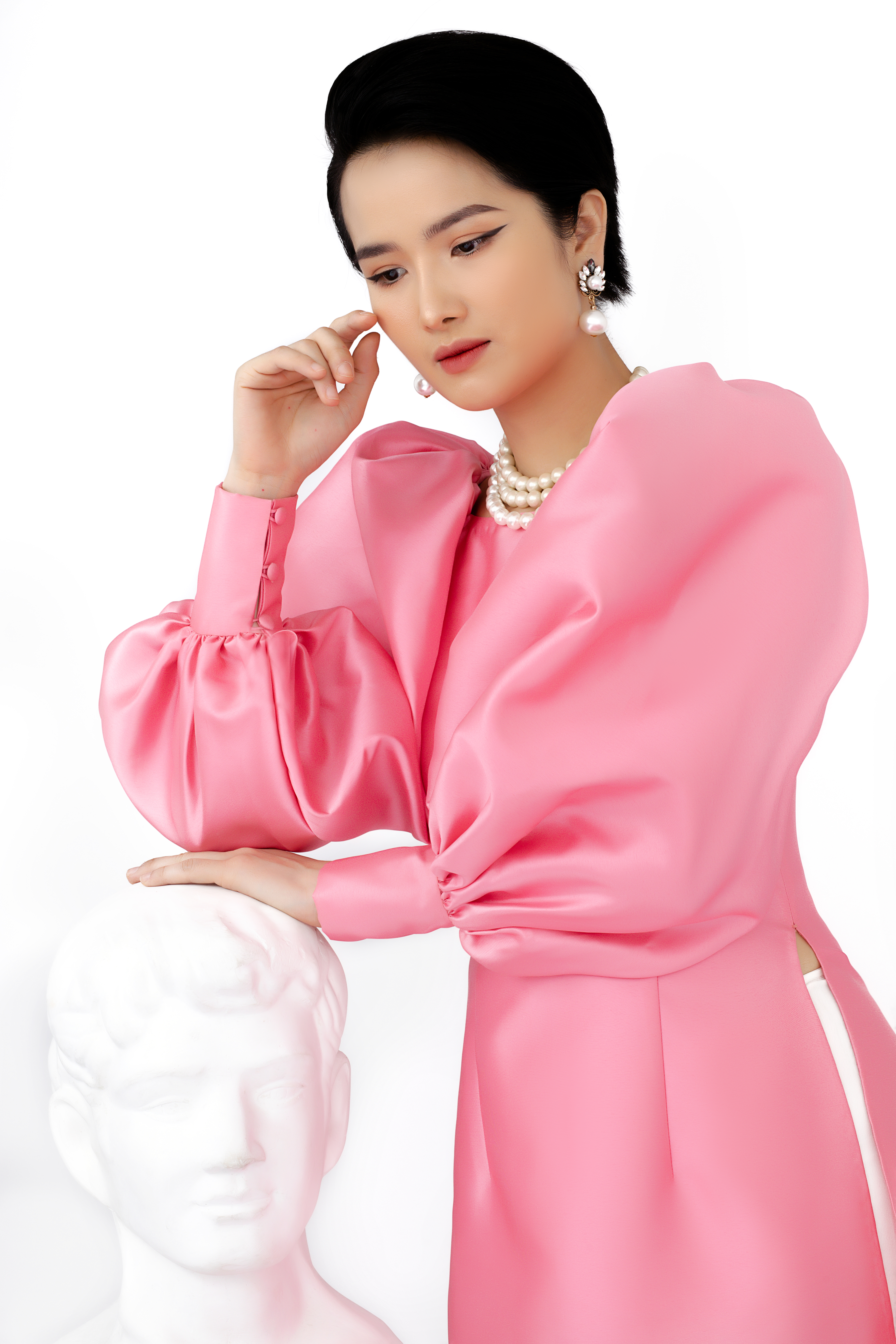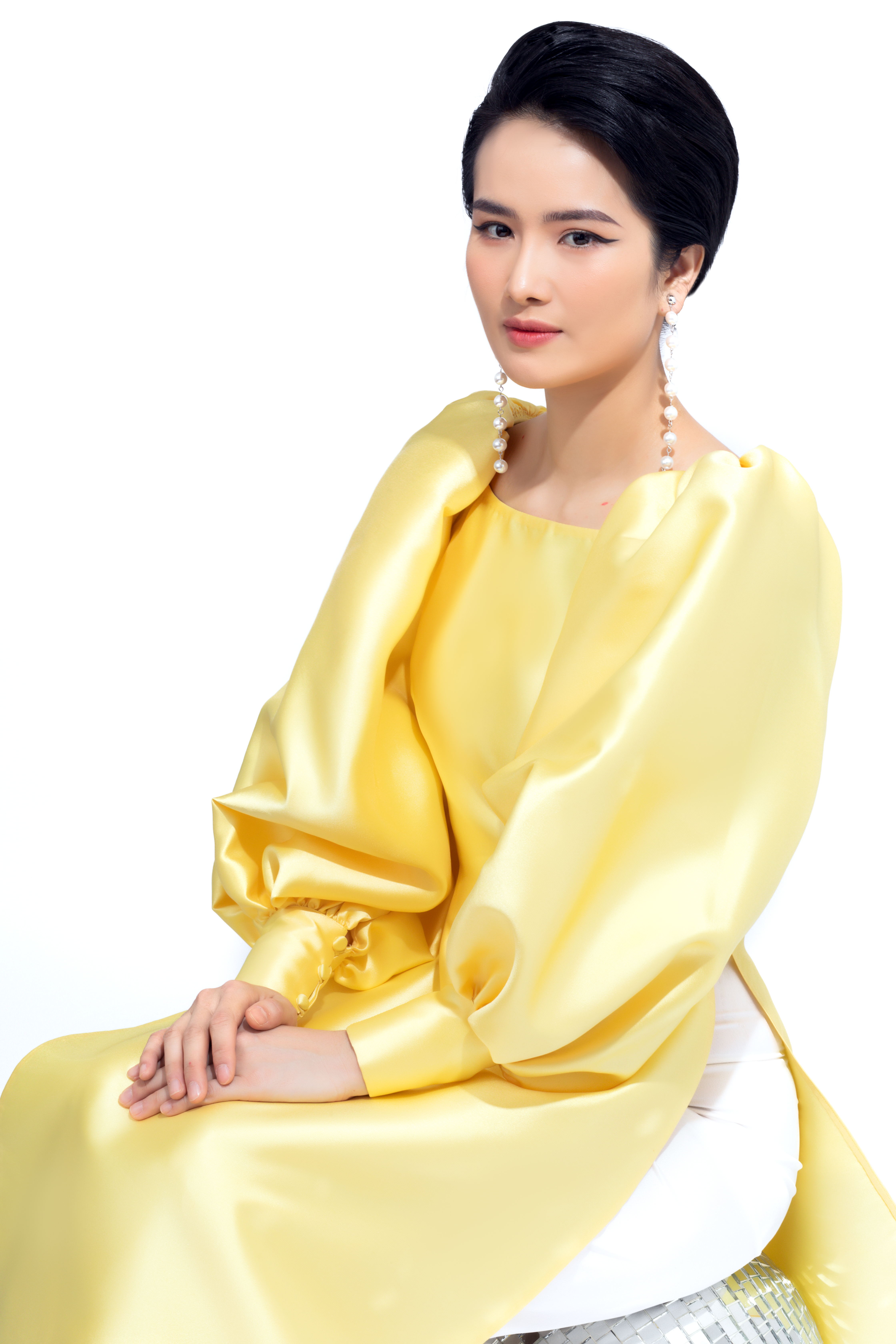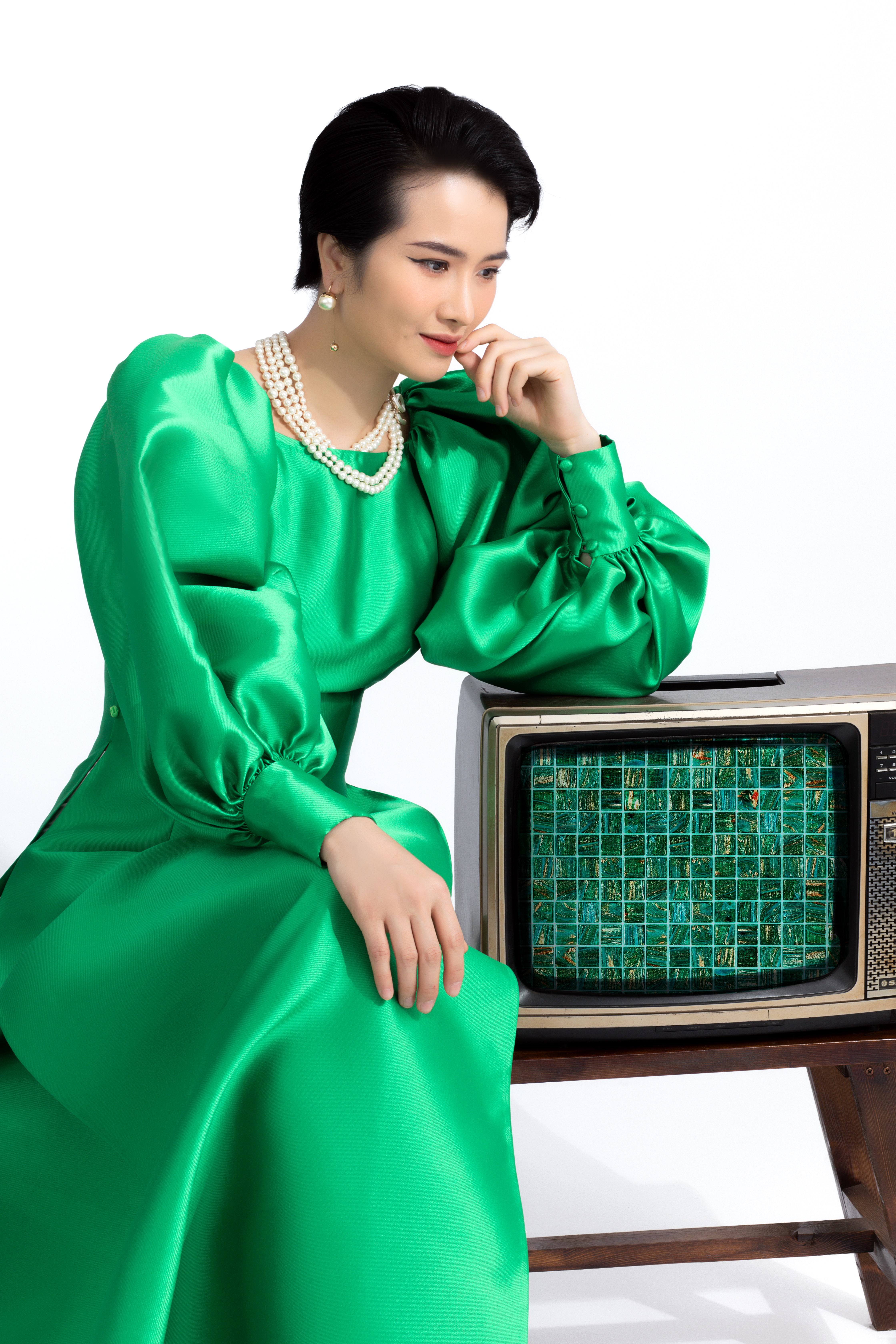Khác với hình ảnh gợi cảm trước đây, nữ diễn viên Chuyện tình đảo ngọc chọn trang phục kín đáo, toát lên vẻ quyền quý và sang trọng trong từng khung hình. Mái tóc dài thướt tha trở thành thương hiệu của Cao Thuỳ Dương năm xưa cũng được thay đổi bằng kiểu tóc tém, để lộ toàn bộ nét thanh tú trên gương mặt.