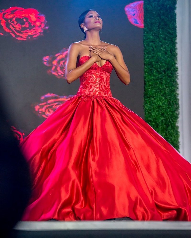 Mới đây nhất là cô bạn thân của H'Hen Niê - Tamaryn Green. Trong đêm chung kết Miss South Africa 2019, nàng Á hậu 1 Miss Universe đã quyết định “chơi lớn” với chiếc váy màu đỏ có kiểu dáng xòe rộng trông vô cùng đã mắt.