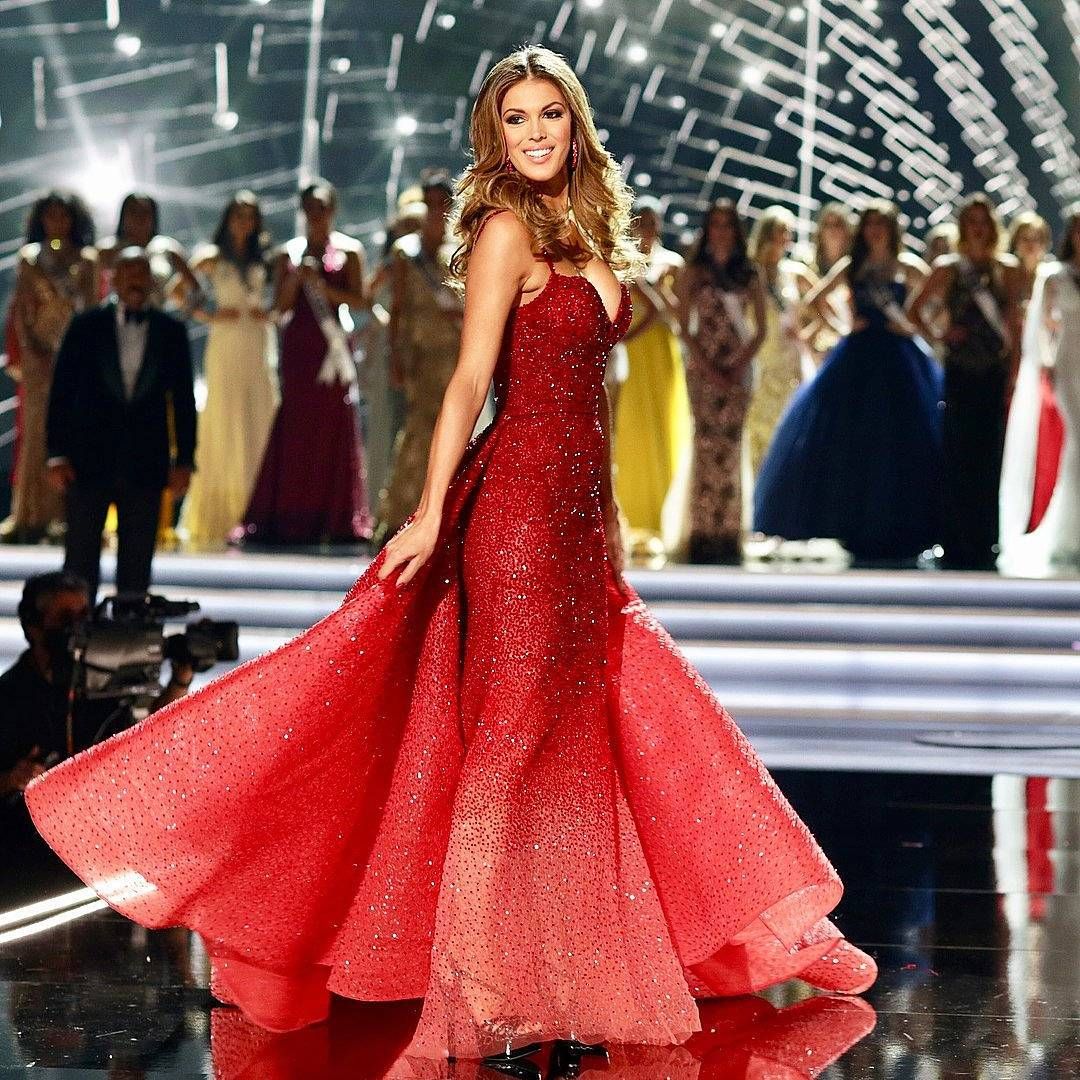 Cựu Miss Universe 2016 - Iris Mittenaere lại khác biệt với kiểu váy có tà phía sau.