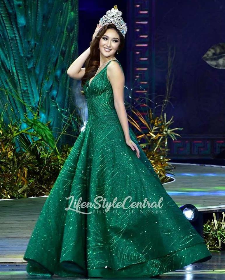 Hoa hậu Trái đất 2017 -Karen Ibasco diện chiếc váy xanh sải bước nhẹ nhàng trước khi trao vương miện cho Phương Khánh.