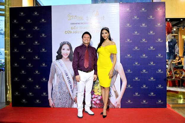 Á hậu Hoàng Thùy và ông Phạm Văn Việt, Chủ tịch Hội đồng quản trị - Nhà sáng lập thương hiệu V-SIXTYOFUR.
