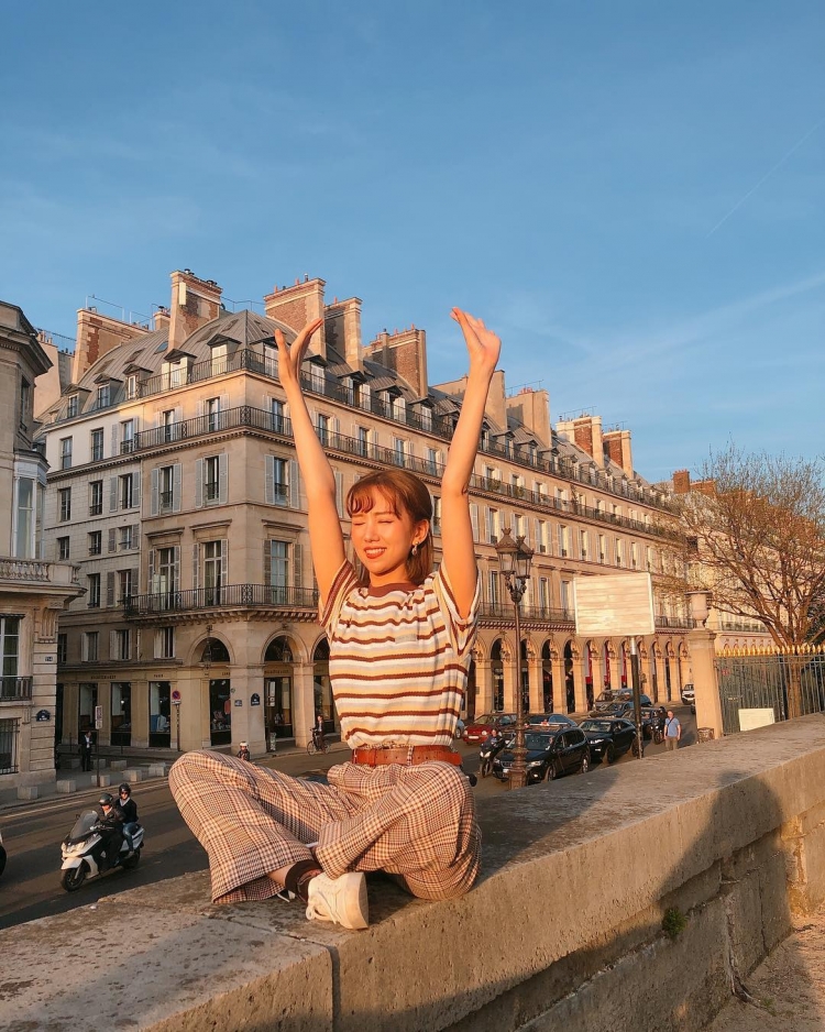 Cách phối đồ tinh tế của Min với hai items họa tiết khác nhau gồm áo và quần nhưng vẫn tạo nên một set đồ vừa mắt thật sự rất đáng học hỏi.