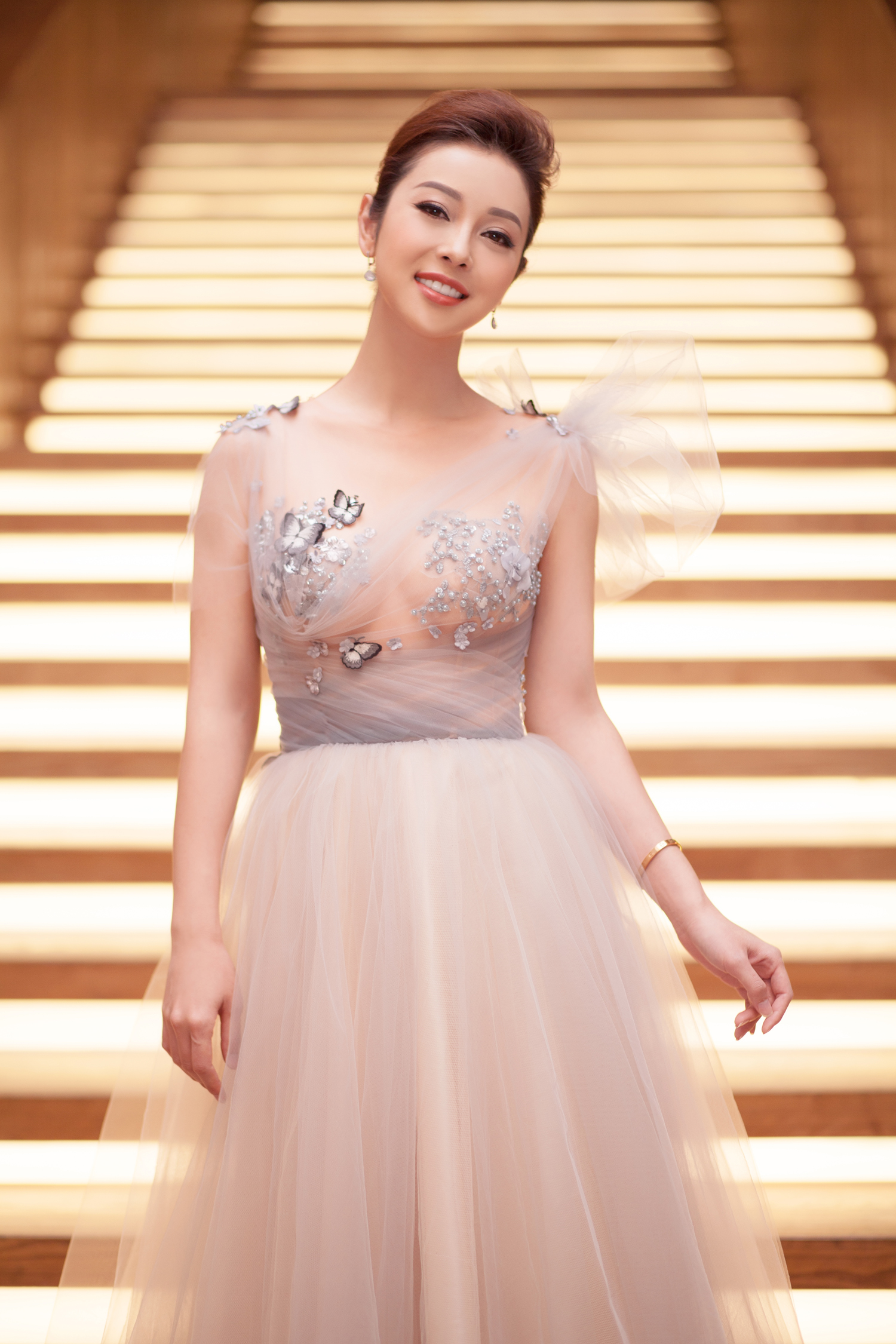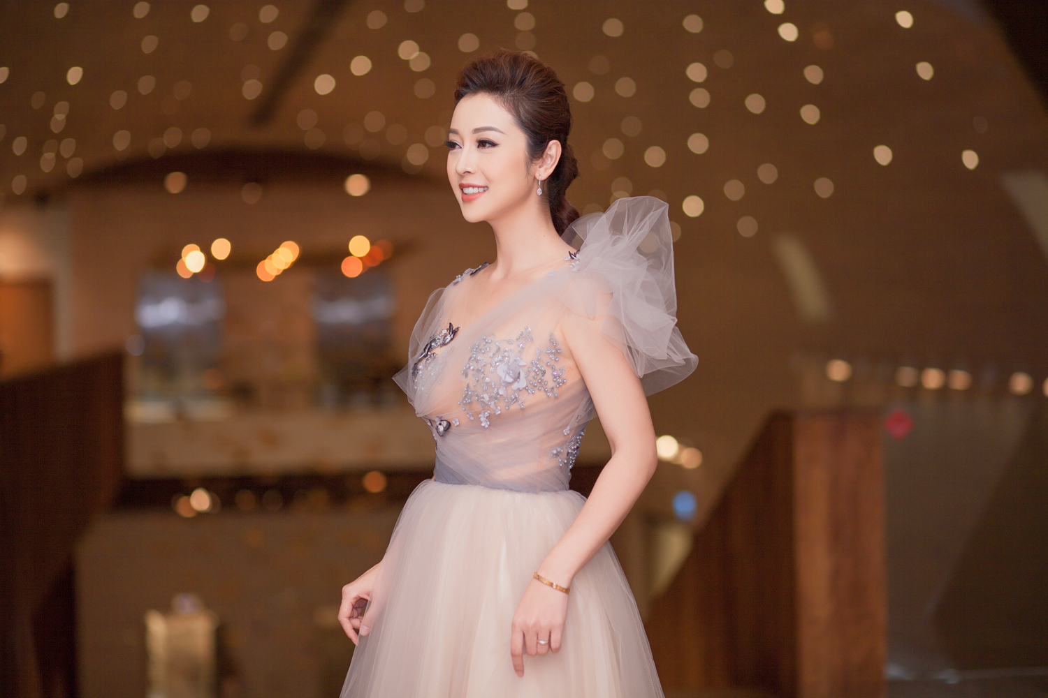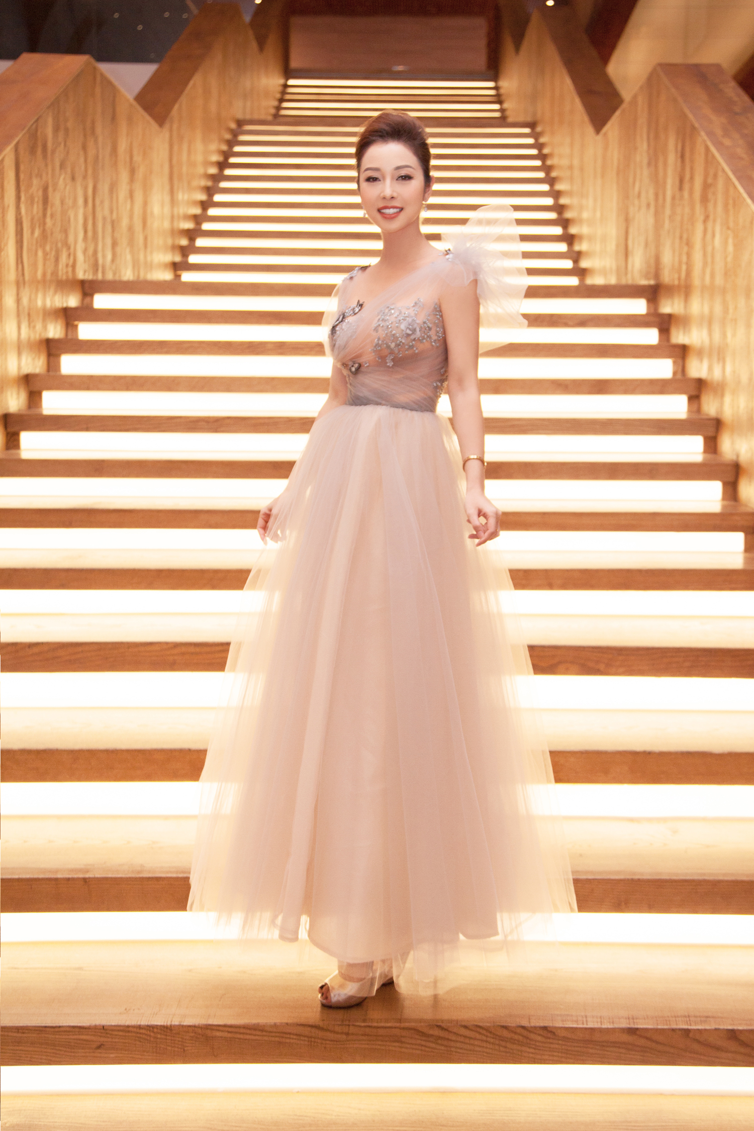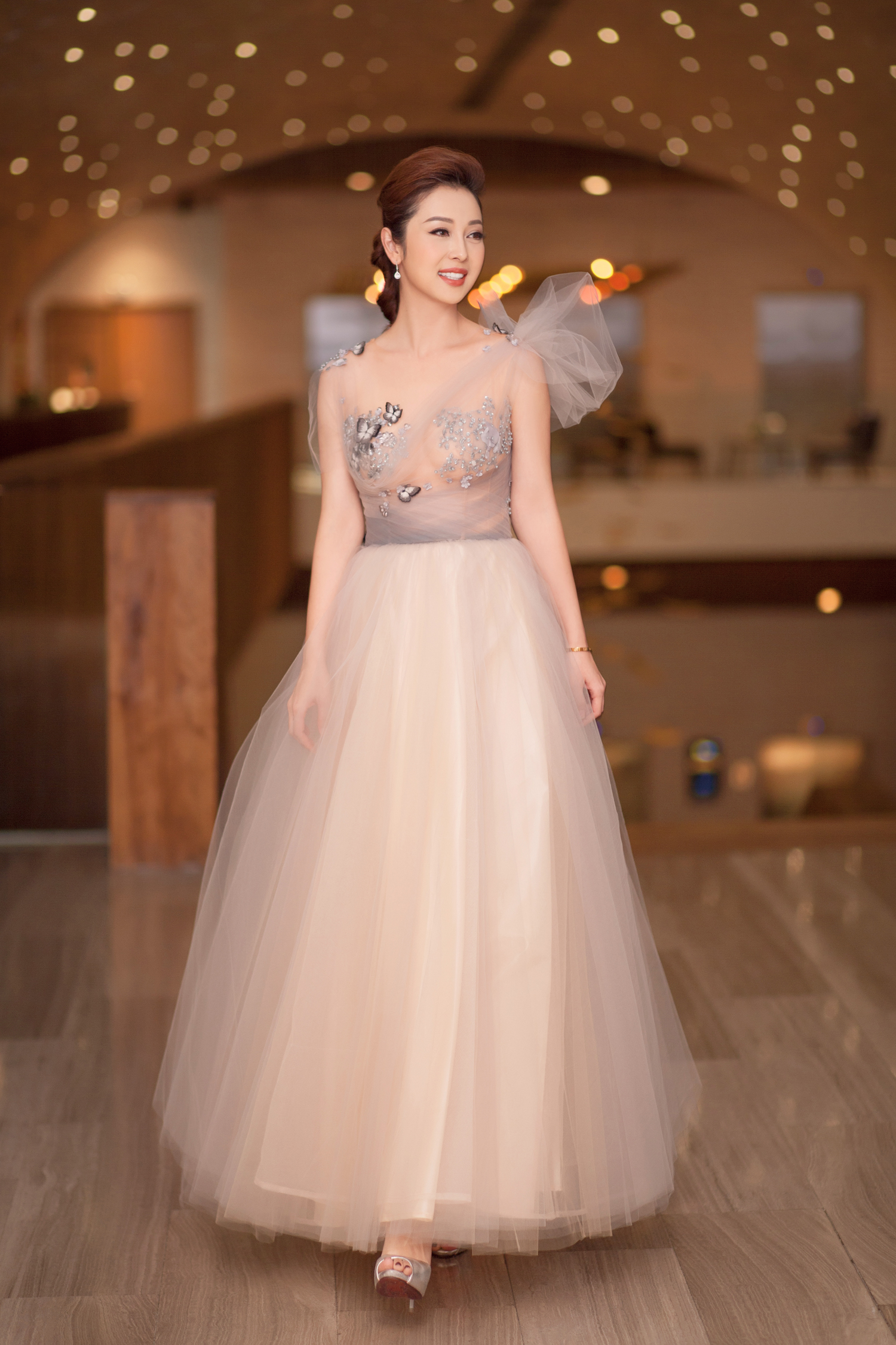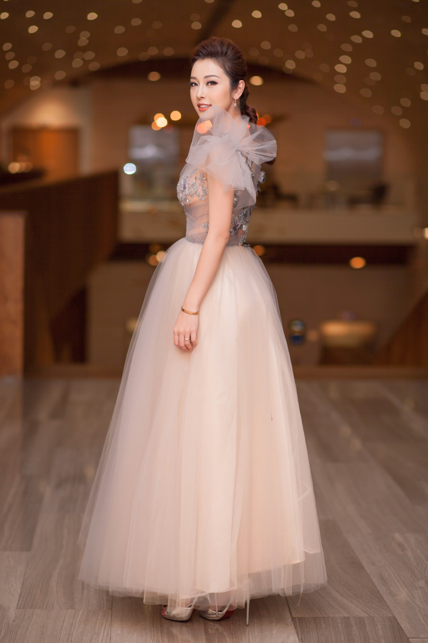 Hoa hậu MC Jennifer Phạm xuất hiện xinh đẹp tựa thiên thần trong chiếc đầm công chúa màu hồng phấn.