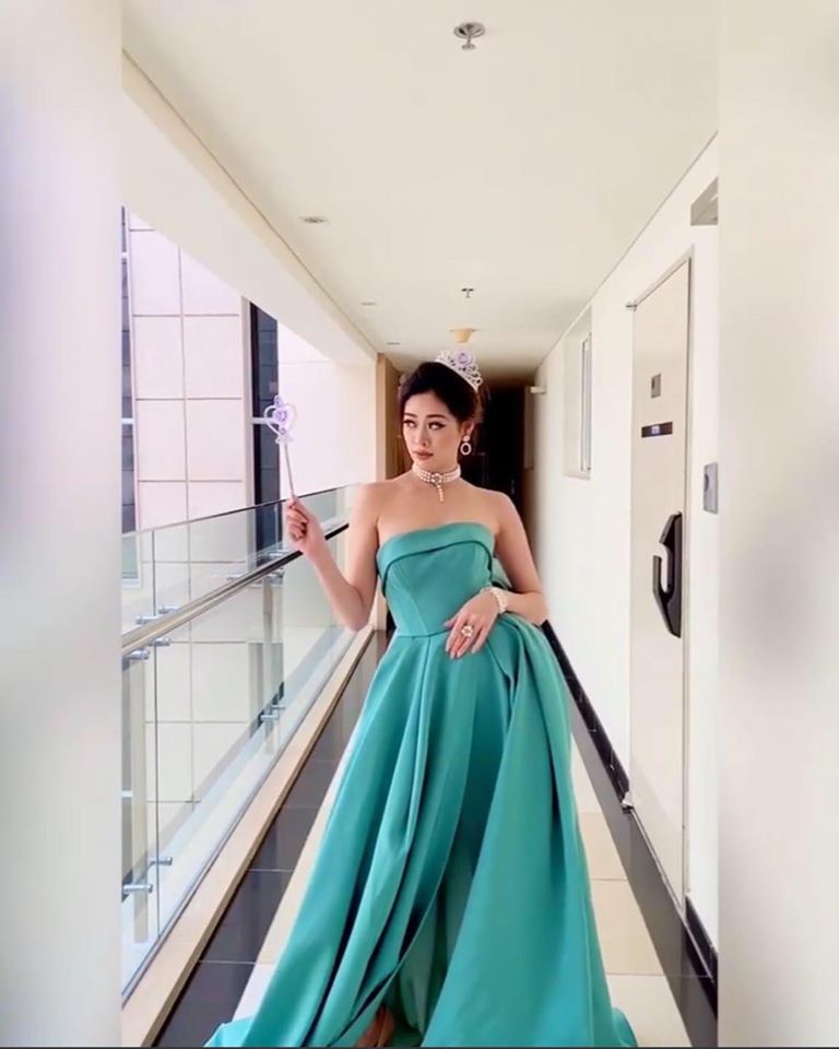 Ngay sau clip bung lụa bể cả màn hình, fan cũng nhanh chóng phát hiện hóa ra chiếc váy xanh đã từng giúp nàng “lọ lem” Khánh Vân hồ biến thành cô tiên trên thảm đỏ sự kiện trong nước cách đây không lâu. Ở cả hai lần diện, đương kim Hoa hậu Hoàn vũ đều chinh phục người xem bằng diện mạo thánh thiện như một nàng tiên.