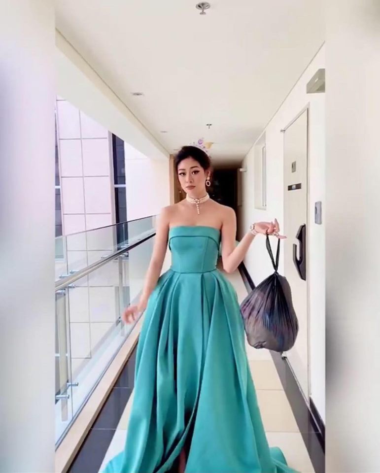 Sau bao ngày giữ hình tượng chín chắn, thì cuối cùng Hoa hậu Khánh Vân cũng đã gia nhập hội những người sinh nông nổi mùa dịch Covid-19. Cụ thể người đẹp đã có màn bung lụa lầy lội, nhí nhố không kém đàn chị Võ Hoàng Yến bằng cách diện một chiếc váy không thể nào hoành tráng hơn chỉ để đi vứt rác cho vui nhà vui cửa.