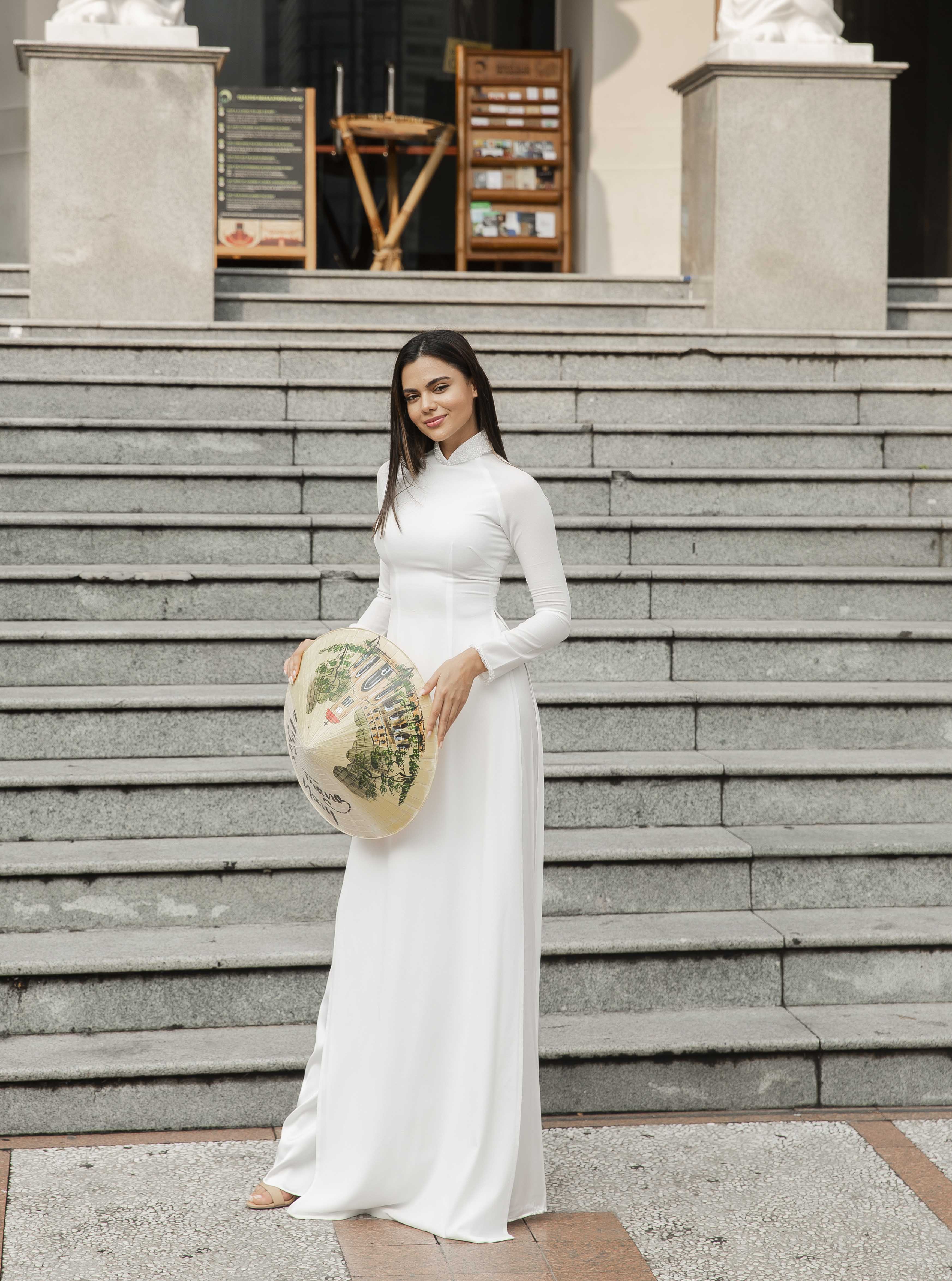Hoa hậu Karen rất thích thú khi cùng Emily sải bước trong những tà áo dài, cô không ngớt lời khen bộ áo dài Việt Nam quá đẹp.Và bây giờ thì cô đã hiểu vì sao người phụ nữ Việt Nam tự hào về bộ trang phục đặc biệt này đến thế vì thật sự bộ áo dài Việt rất tôn dáng làm toát lên tất cả vẻ đẹp hoàn mỹ của người phụ nữ Việt Nam.