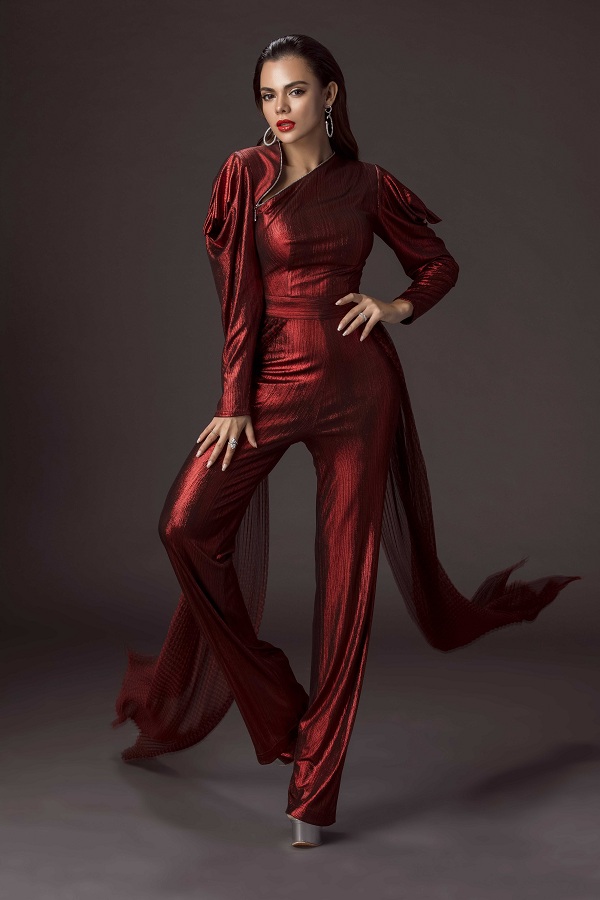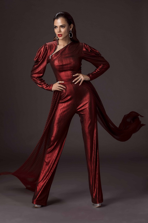 Thiết kế jumpsuit đỏ vô cùng hợp dáng với người đẹp sinh năm 1992
