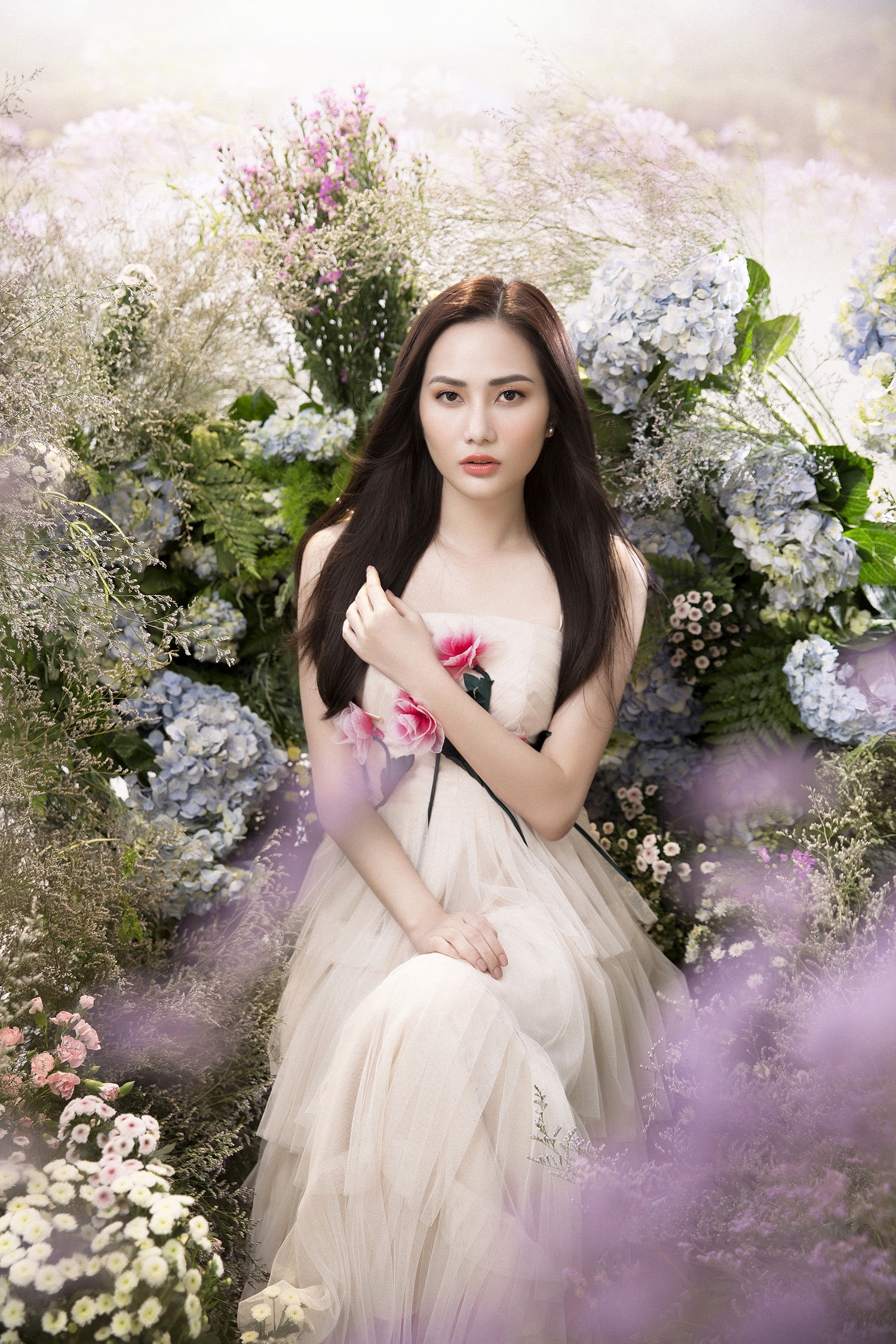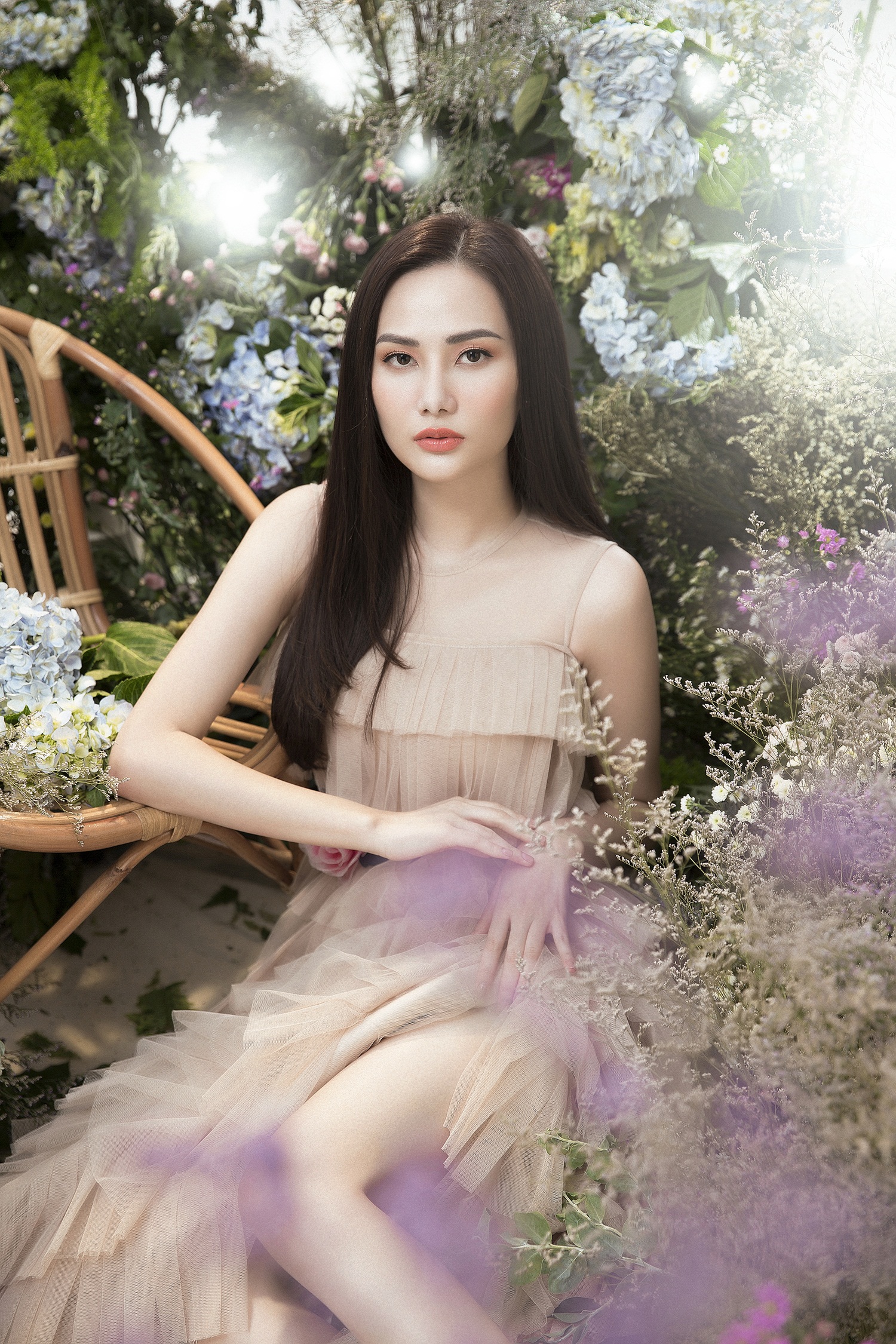 Trong những bộ váy nhẹ nhàng, Diệu Linh trở nên dịu dàng và thanh thoát.