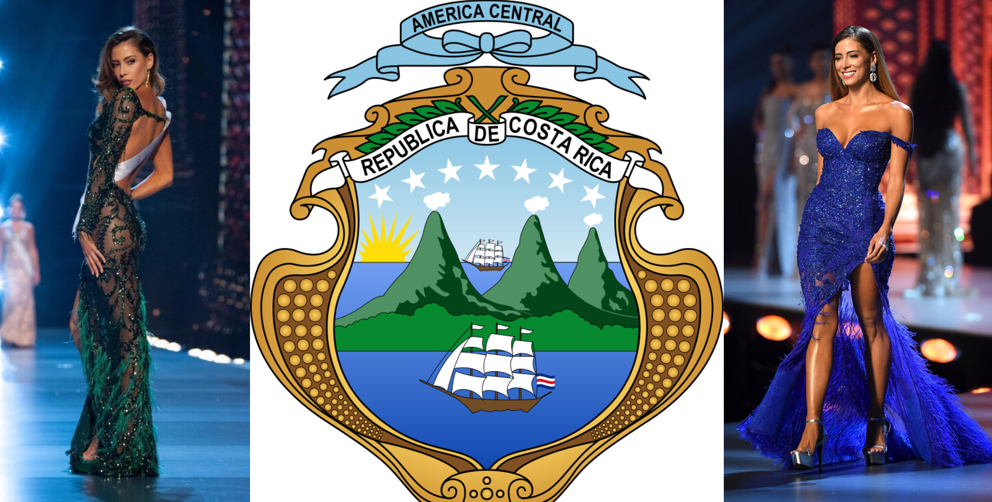 Cũng có nước cờ giống Philippines, Hoa hậu Hoàn vũ Costarica đã mang hai sắc phục xanh lá, xanh nước biển lấy cảm hứng từ quy hiệu trên quốc kỳ để diện trên sân khấu Miss Universe 2018.
