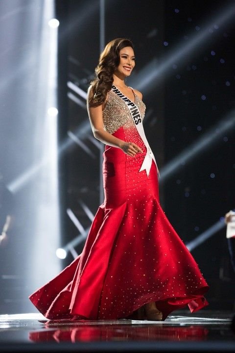 Trong đêm bán kết, Pia Wurtzbach chọn một thiết kế dạ hội màu đỏ. Nhìn chung kiểu dáng màu sắc của bộ cánh này không có gì ấn tượng. Nhưng đó là nước cờ “bí ẩn” của cô.
