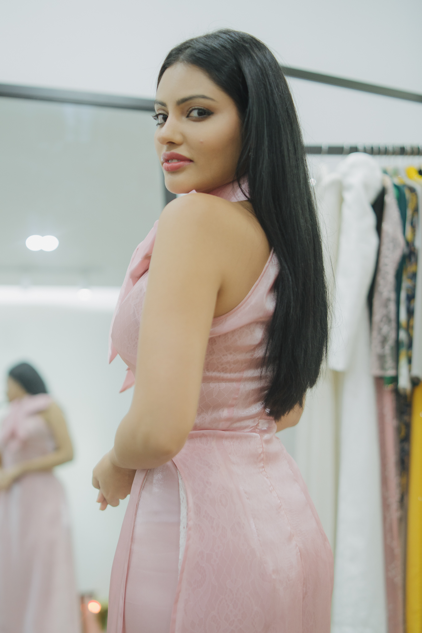 “Tôi thích áo dài Việt Nam. Những thiết kế này mang hơi thở mới. Phom dáng cách điệu, hiện đại, tôn lên vẻ đẹp hình thể của người phụ nữ khiến tôi tự tin hơn khi diện trang phục này”, Sanjna Suri nói.