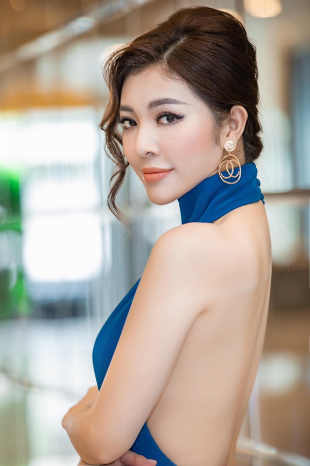 Có mặt ở sự kiện, người đẹp gốc An Giang gây chú ý bởi vẻ ngoài xinh đẹp. Vốn yêu thích phong cách gợi cảm, cô diện bộ đầm khoét lưng của NTK Hoàng Minh Hà kết hợp cùng đôi khuyên tai của Chanel. Người đẹp chọn lối trang điểm nhẹ nhàng, nhấn vào đôi mắt, tôn lên gương mặt hài hòa.