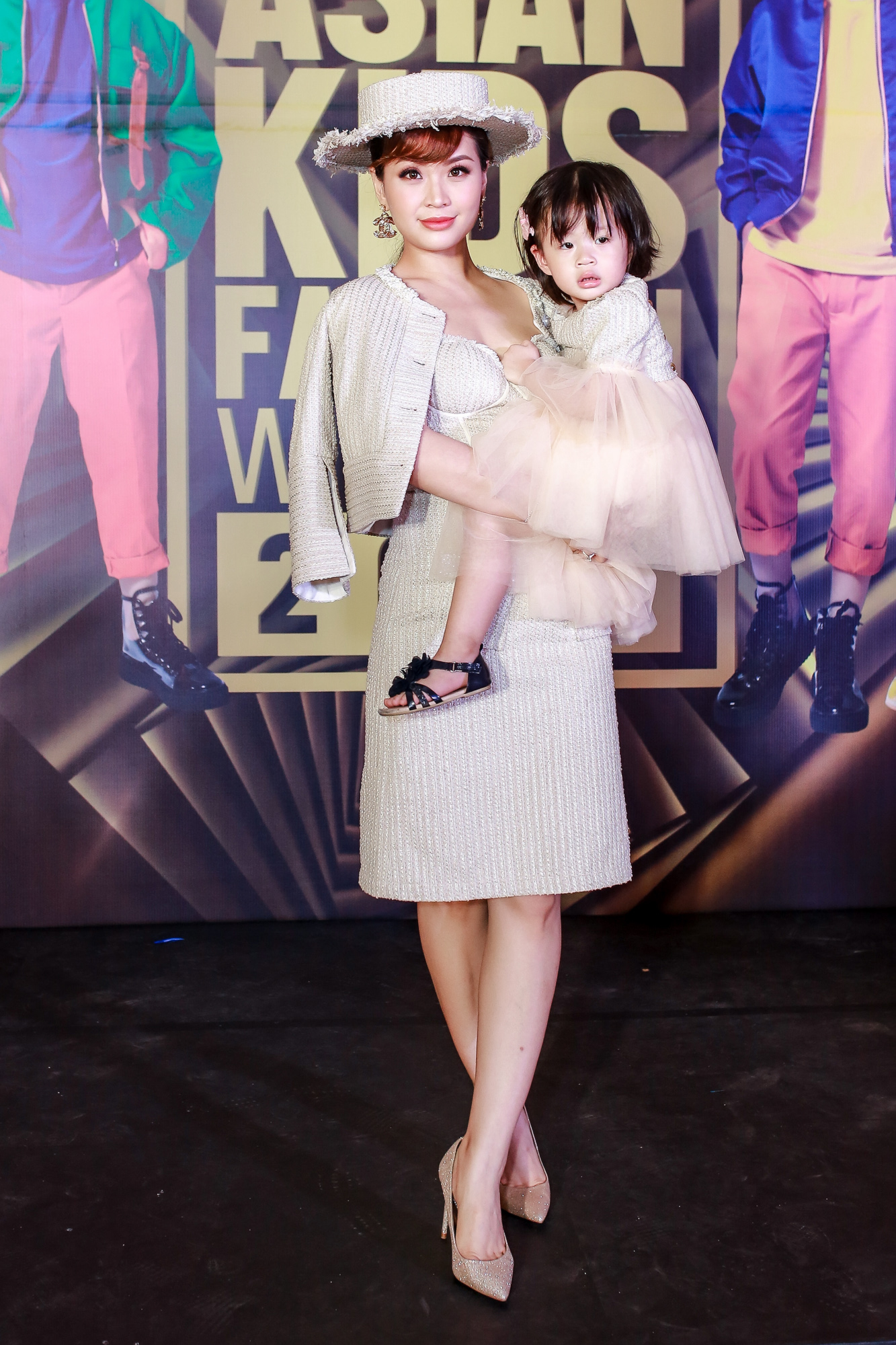 Á hậu Diễm Trang và con gái Julia diện đồ ton sur ton đến chúc mừng chương trình.