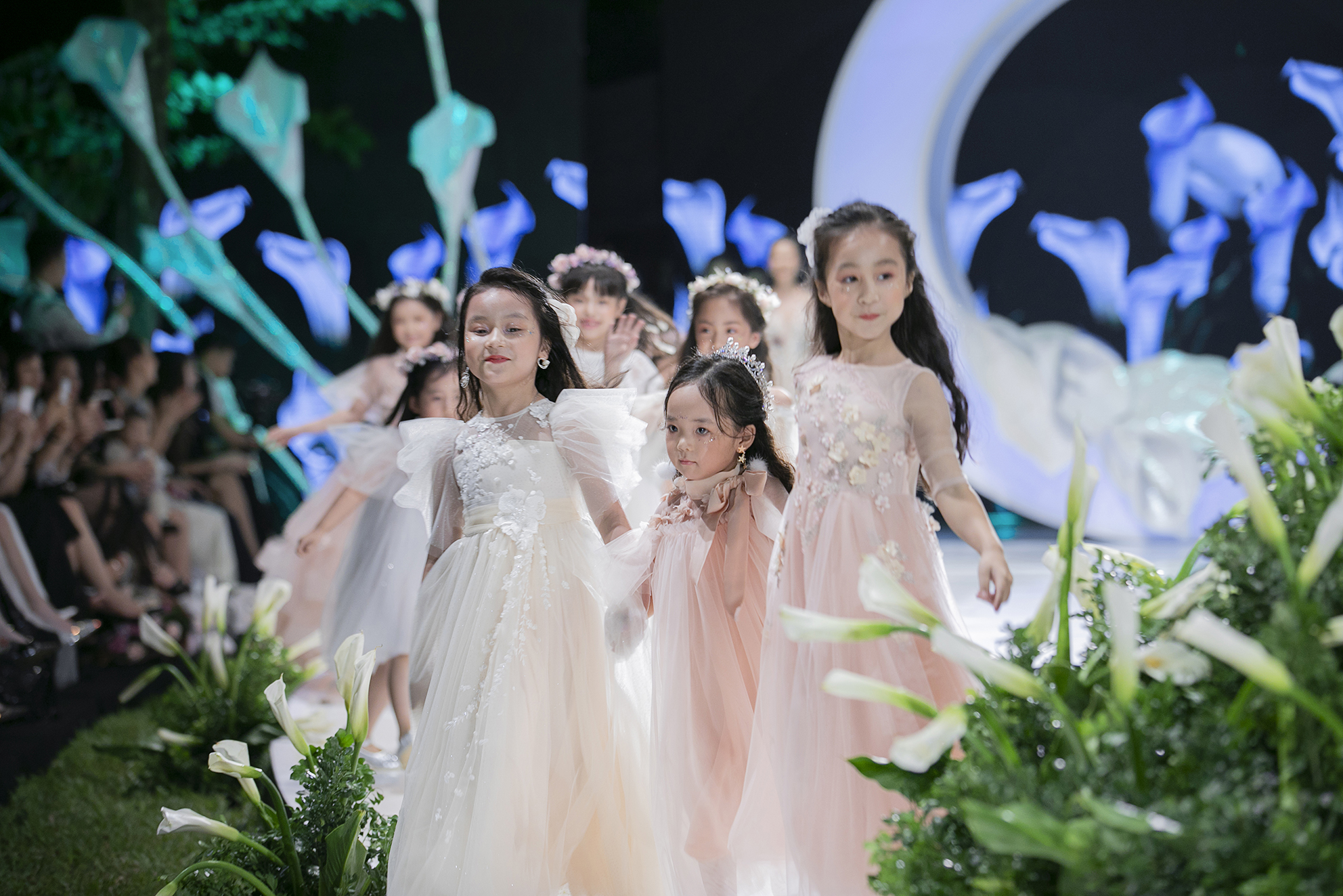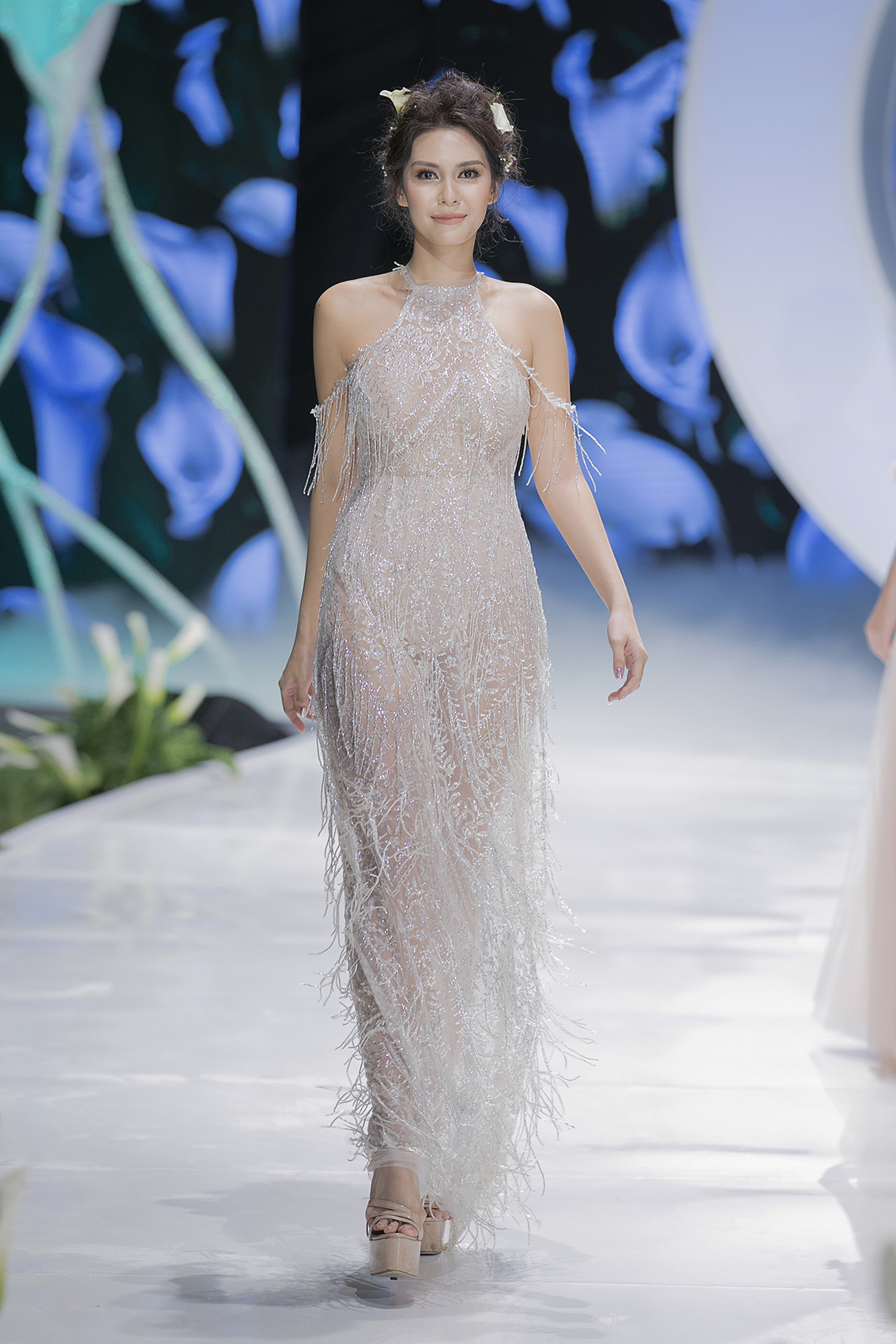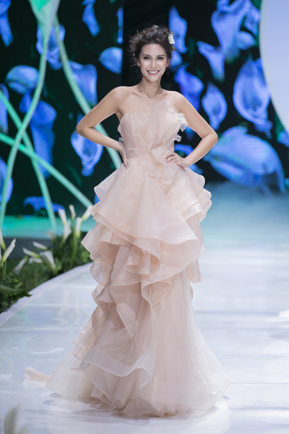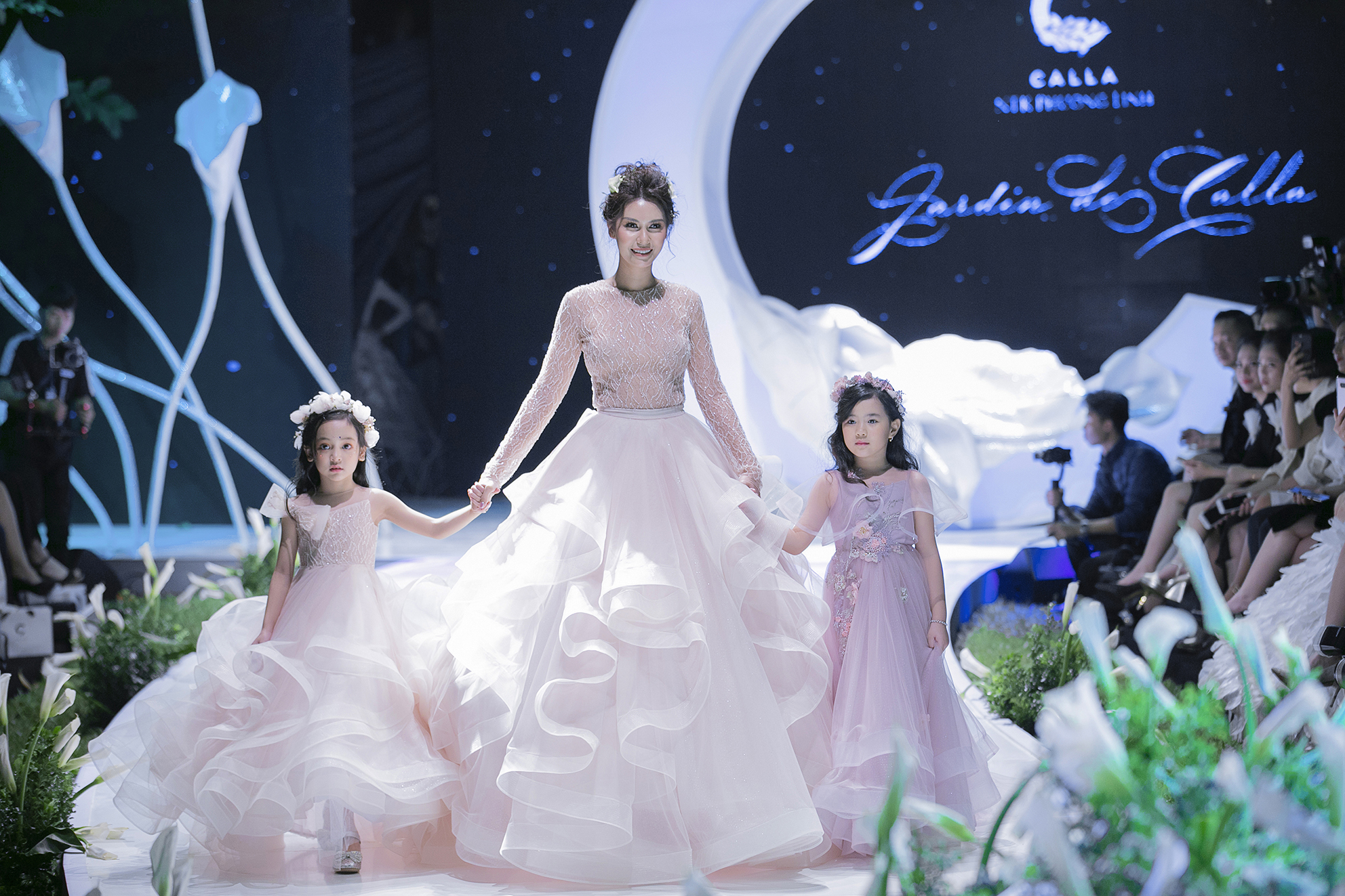 Màn xuất hiện tựa nữ thần của Angelia Ong cùng hai thiên thần nhí đi giữa rừng hoa Calla như lời mở màn đầy ngọt ngào cho câu chuyện tình yêu của Jardin de Calla. Mẫu váy được Miss Earth 2015 mang cũng là một trong những chiếc váy được NTK Phương Linh đặt nhiều tâm huyết nhất trong BST mang âm hưởng nước Pháp.