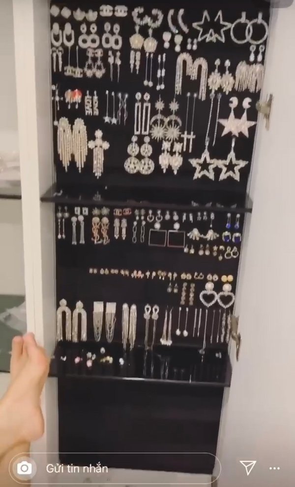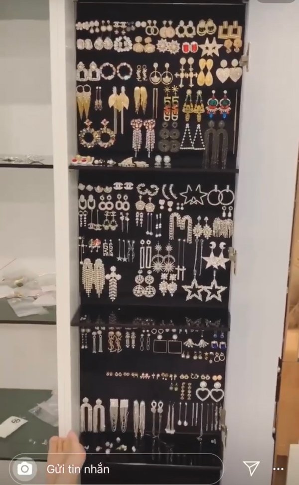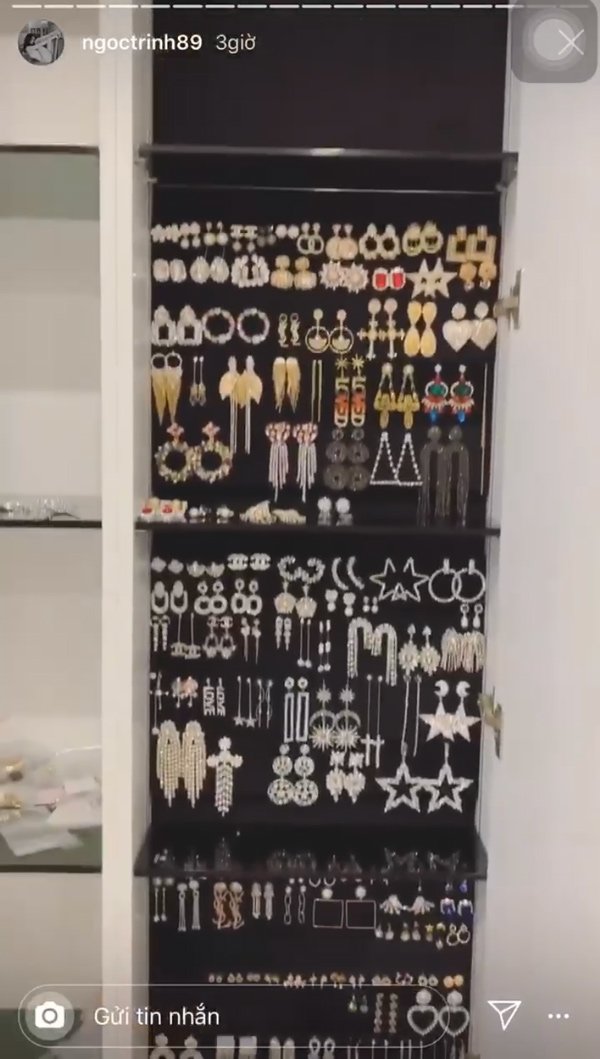 Có ai tưởng nhầm tủ hoa tai của Ngọc Trinh là store bày bán ngoài tiệm thì cũng dễ hiểu.