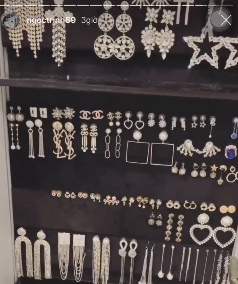 Sở hửu tủ đồ tiền tỷ với hàng trăm đôi giày đắt giá, bạt ngàn những chiếc túi hiệu cùng muôn vàn màu sắc, kích cỡ… quần áo chẳng thể đếm xuể, Ngọc Trinh thật sự biết cách khiến các cô gái khác phải ghen tỵ. Thế nhưng, đừng tưởng người đẹp chỉ đầu tư vào những item lớn, nổi bật, ngay cả hoa tai - thứ tưởng chừng chỉ cần vài mẫu cơ bản để mix match thì Ngọc Trinh cũng phải mua hàng trăm đôi, khiến người ngoài nhìn muốn hoa mắt.